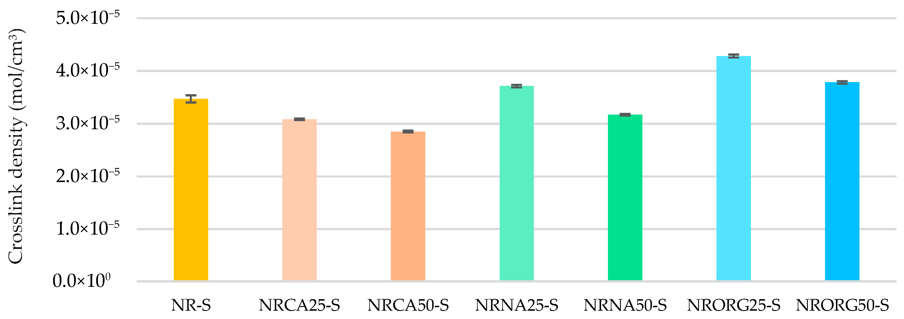 2.2.3. Montmorillonite, Natural Rubber Compounds, and Nanocomposite Characterization
