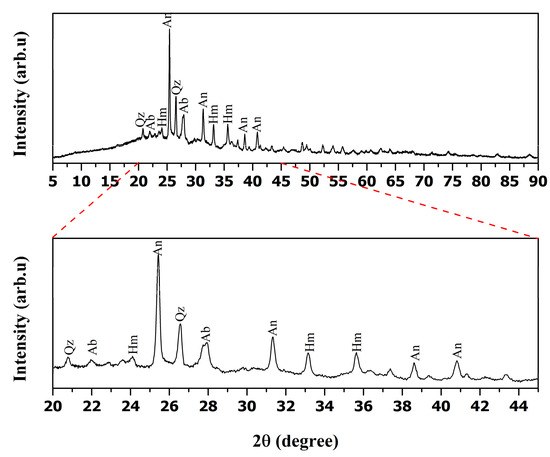 To further quantify the crystalline content, the Reference Intensity Ratio (RIR) quantification method was applied, and results were given in Table 2. The semi-quantitative analysis indicated that more than 50% of the crystalline portion was composed of anhydrite, a phase considered undesirable for zeolite synthesis due to its potential interference with nucleation and crystallization processes.
