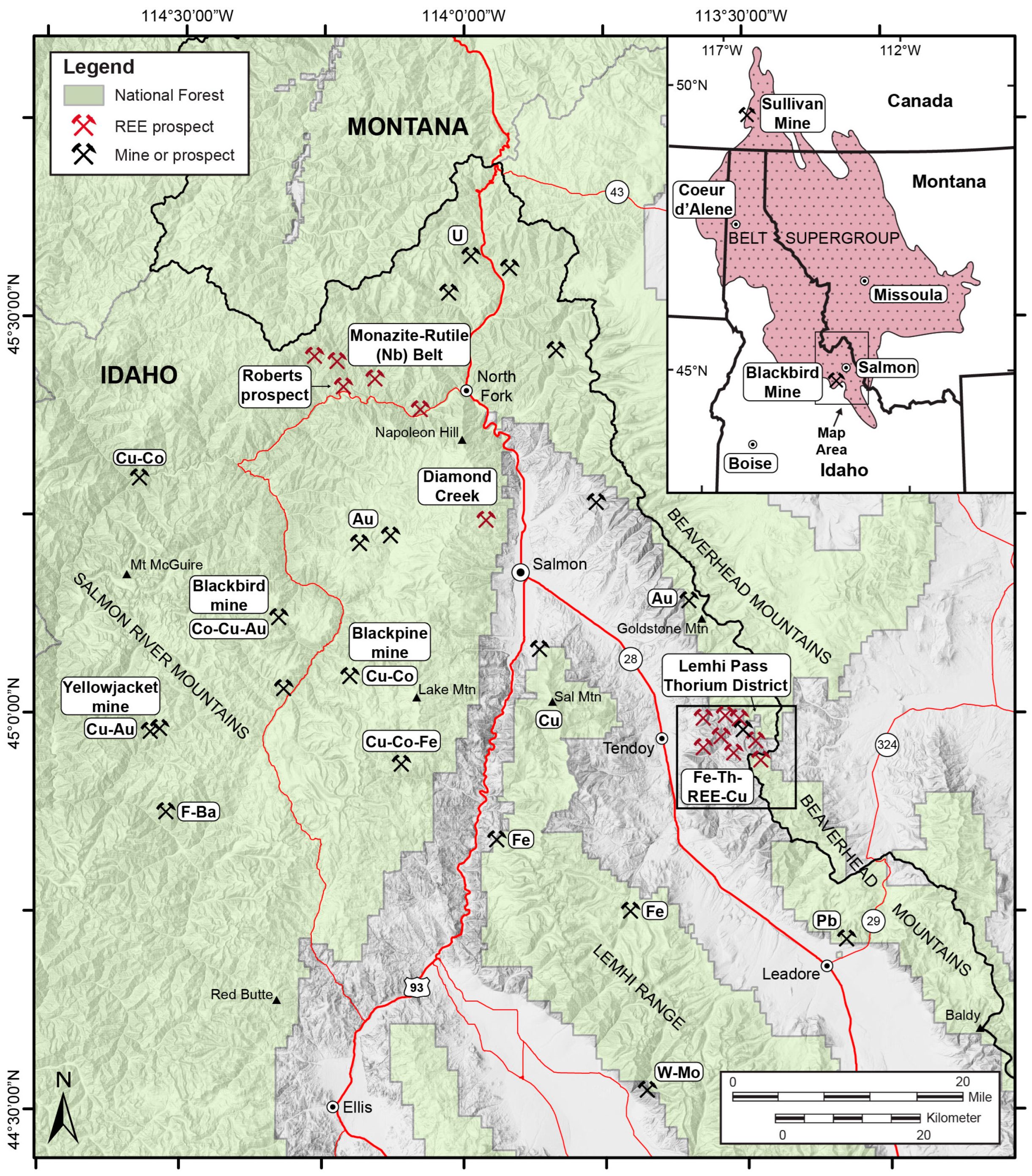 - What is the distribution of rare earth elements in the architecture of the Mesoproterozoic rocks of the region? Only a few multi-element analyses characterize the diverse lithologies of the Lemhi sub-basin metasedimentary units or the regional suite of 1370 Ma megacrystic granites (augen gneiss) and mafic intrusive complex. Likewise, there are few analyses of the Paleozoic magmatic rocks in Lemhi County. If any of these units were indeed sources of rare earths then how much, if any, of the unusual REE fractionation could have been inherited?