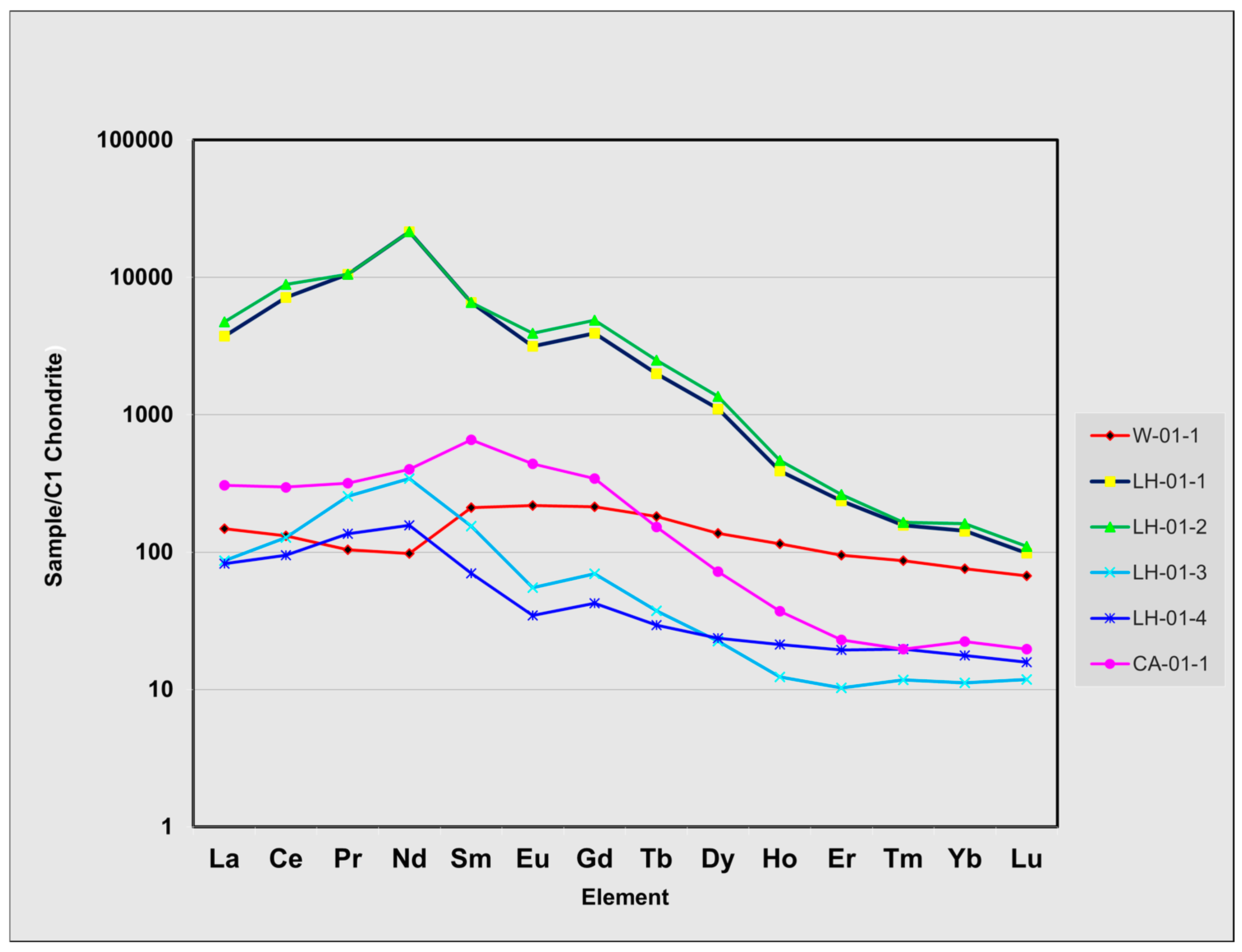 | Element | Lucky Horseshoe, Lemhi Pass (LH06-24B) | Roberts Carbonatite, Mineral Hill (07WP127B) | Syenite, Lemhi Pass (JA06-01) |