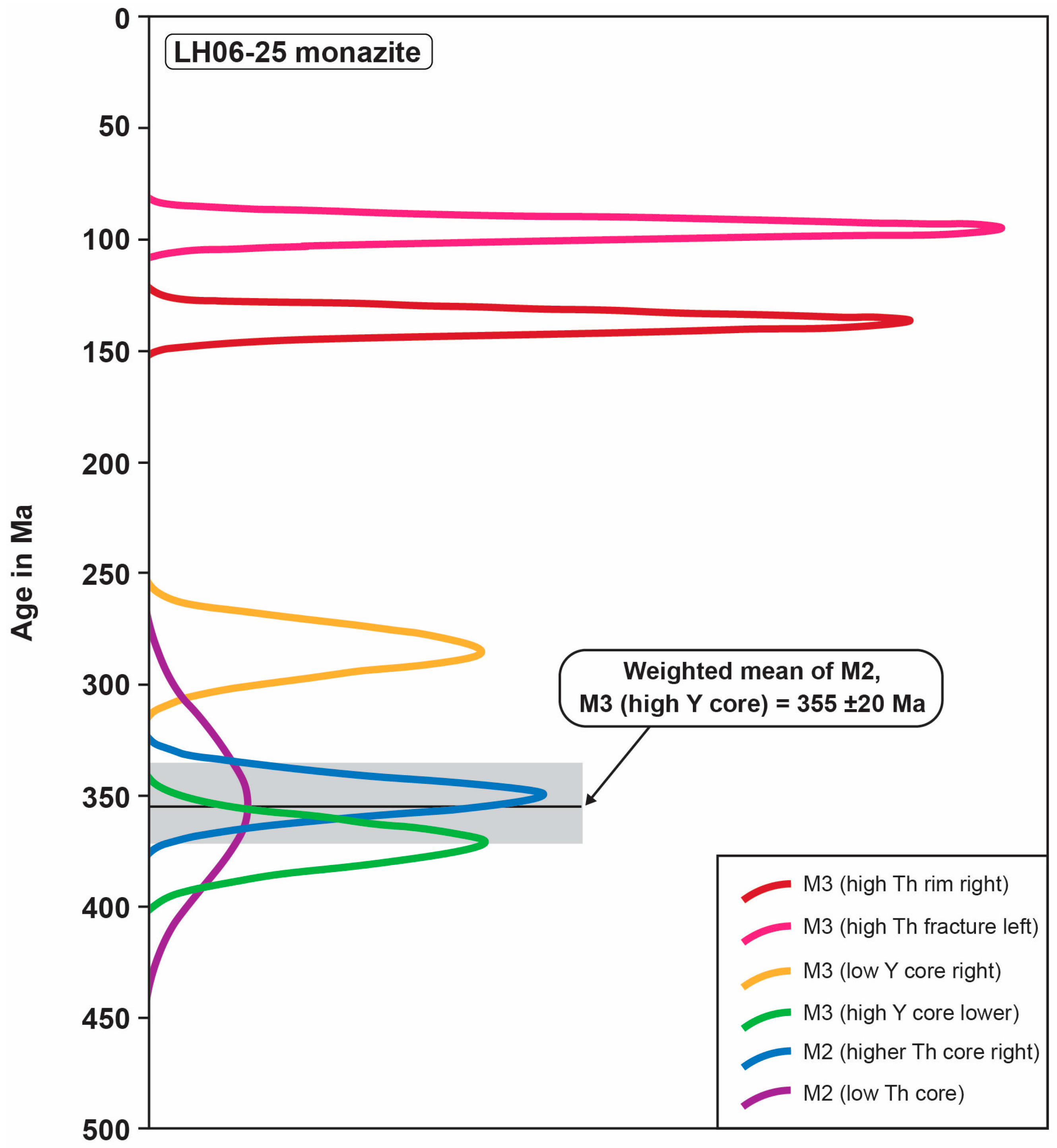 2.2. U-Th-Total Pb Electron Microprobe Geochronology on Monazite