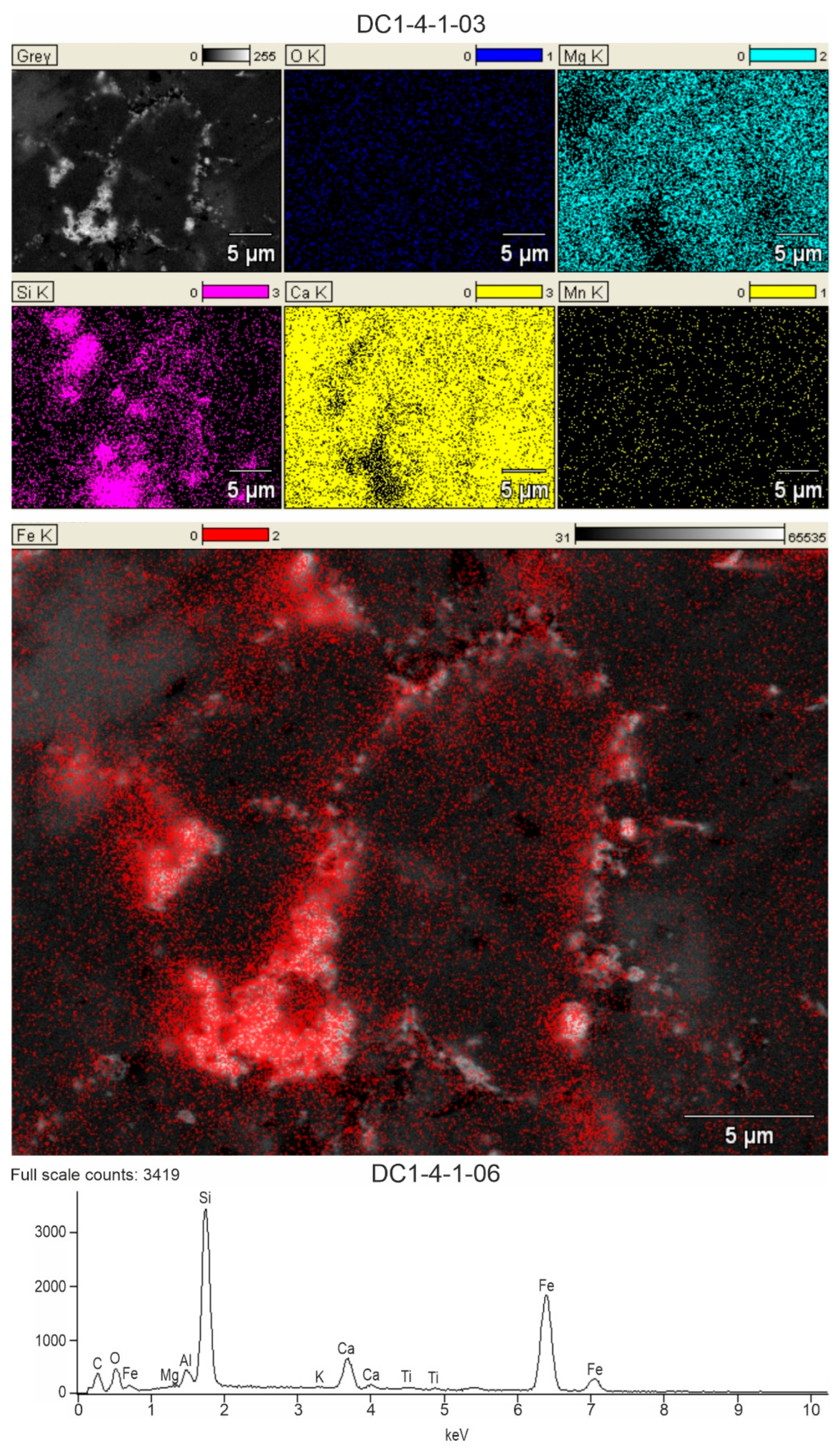 4.4. Correlation Between Main Elements and SEM-EDS Mapping
