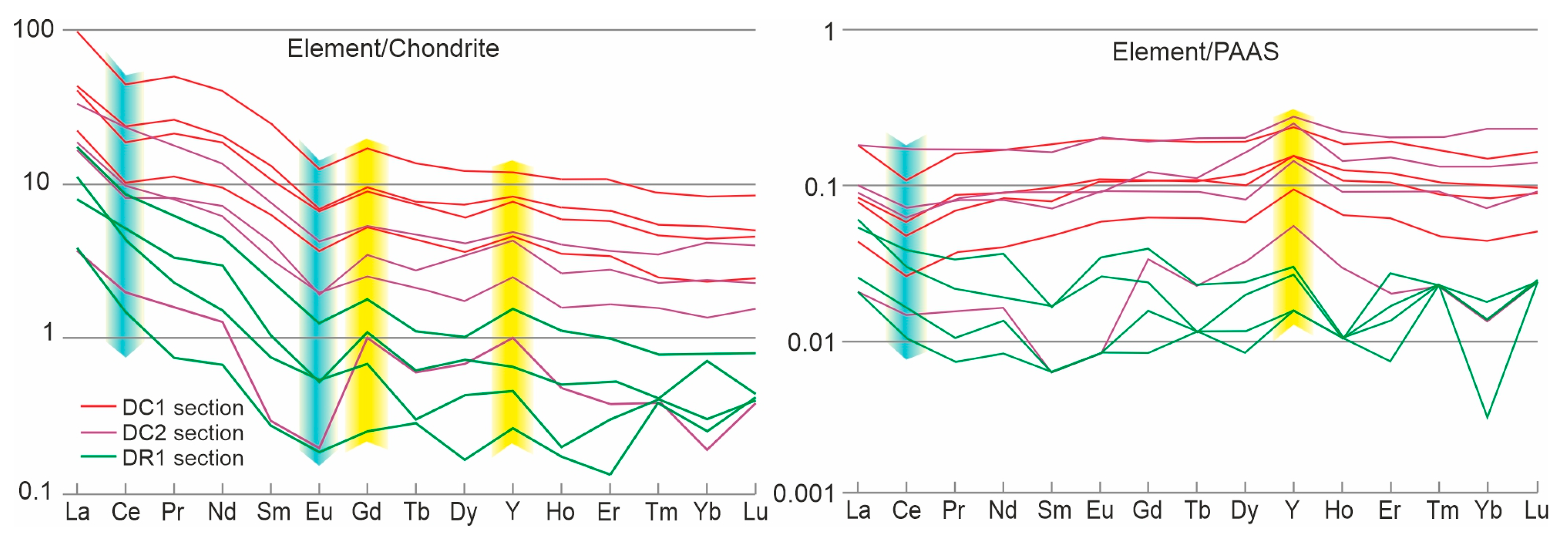- Piper, D.Z.; Bau, M. Normalized rare earth elements in water, sediments, and wine: Identifying sources and environmental redox conditions. Am. J. Analyt. Chem. 2013, 4, 69–83. [Google Scholar] [CrossRef]