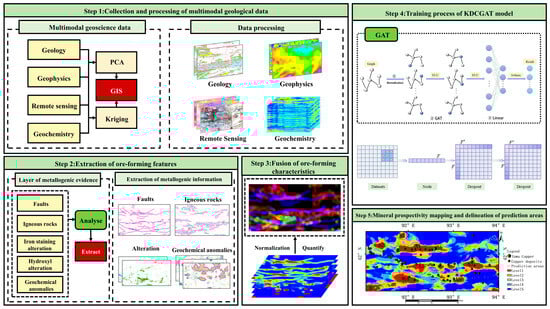 - The data standardization process on the ArcGIS platform combines five key metallogenic elements: fractures, magmatic rocks, hydroxyl/iron-stained erosion, and geochemical anomalies. It creates standardized feature cubes and offers quality inputs for global–local feature aggregation in GAT.