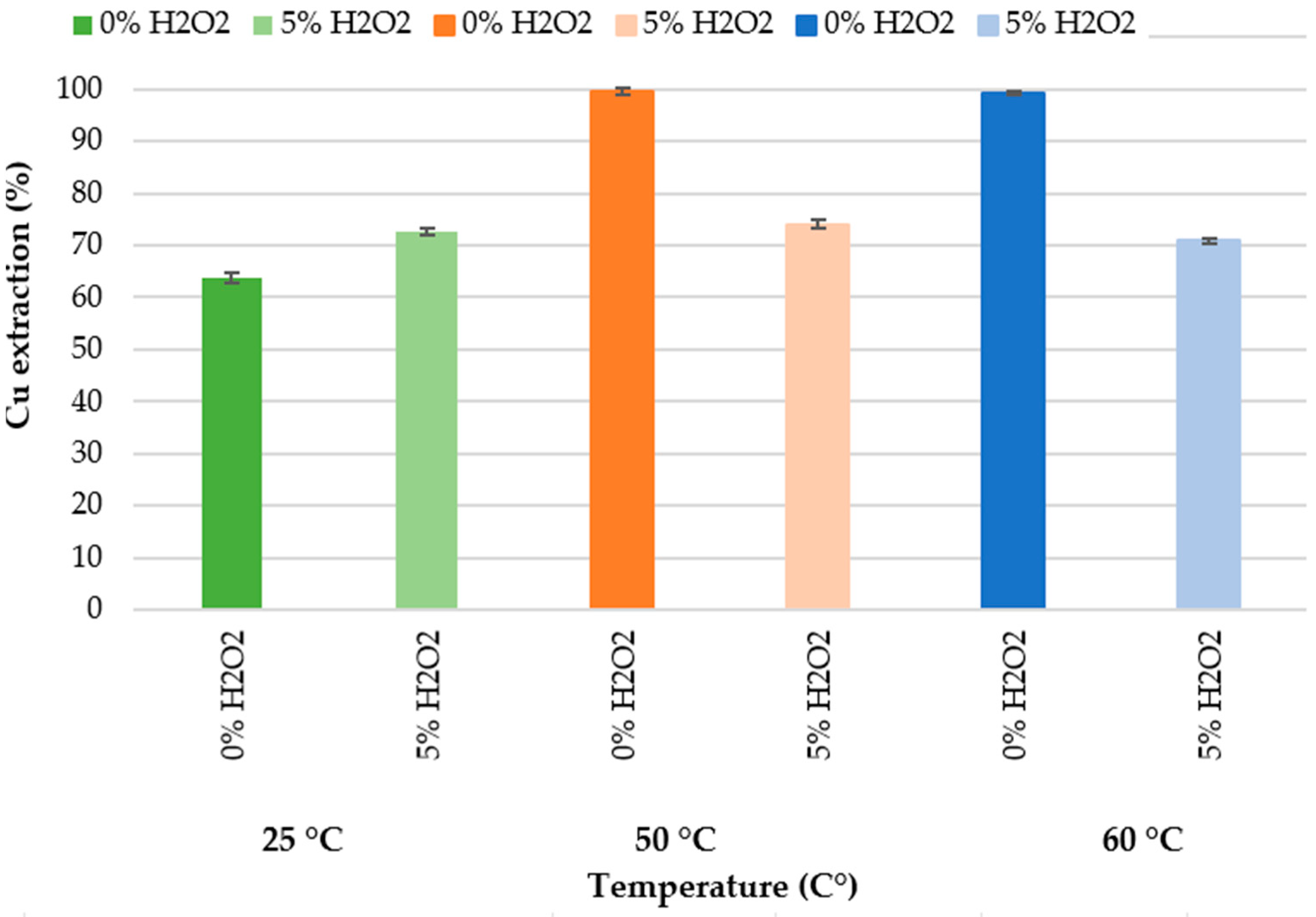 - Petrović, S.J.; Bogdanović, G.D.; Antonijević, M.M.; Vukčević, M.; Kovačević, R. The Extraction of Copper from Chalcopyrite Concentrate with Hydrogen Peroxide in Sulfuric Acid Solution. Metals 2023, 13, 1818. [Google Scholar] [CrossRef]