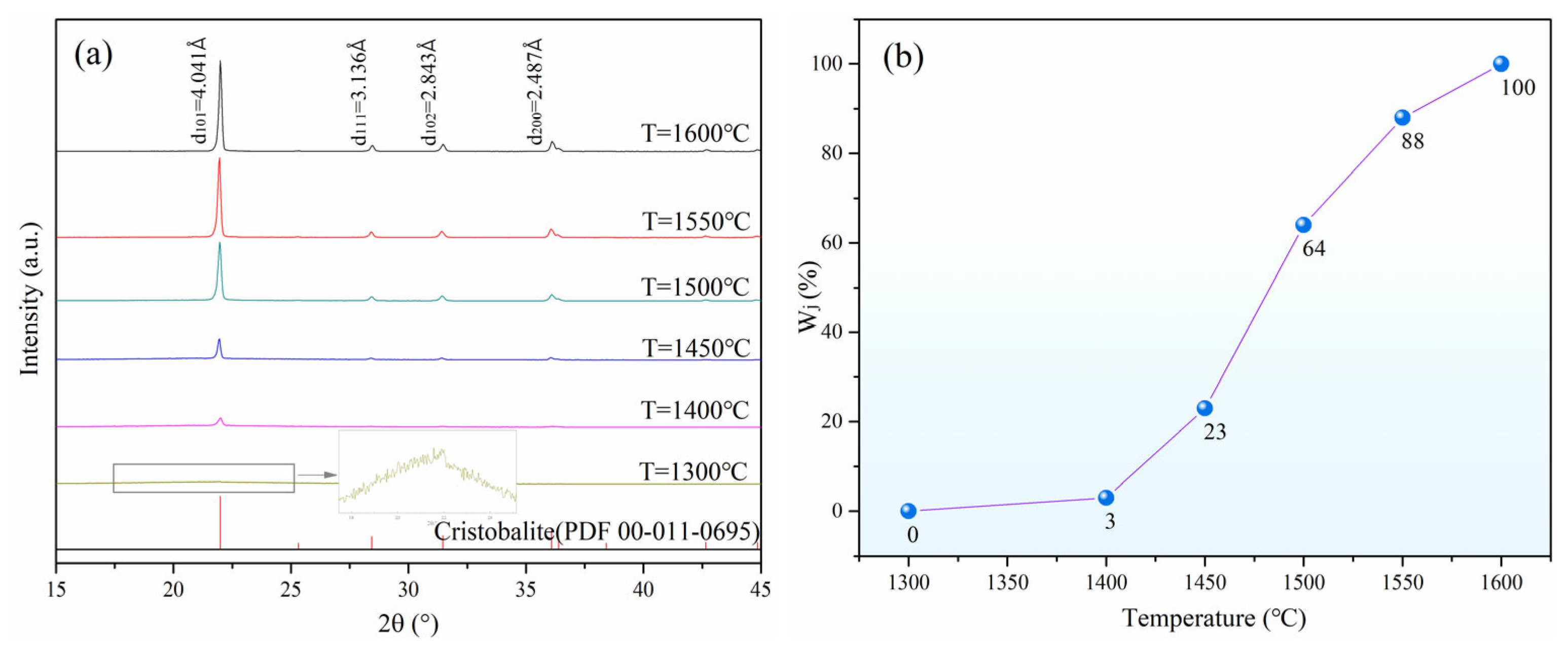 - Lucia, P.; Monica, D.; Alessandro, P.; Fernando, F. A kinetic study of the quartz–cristobalite phase transition. J. Eur. Ceram. Soc. 2013, 33, 3403–3410. [Google Scholar] [CrossRef]