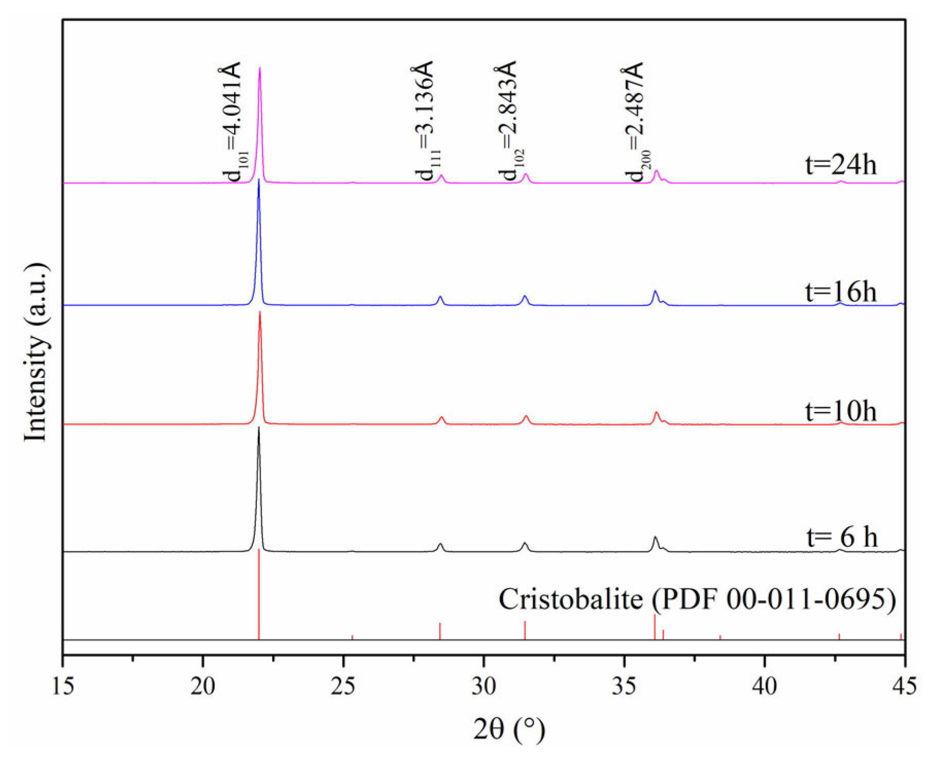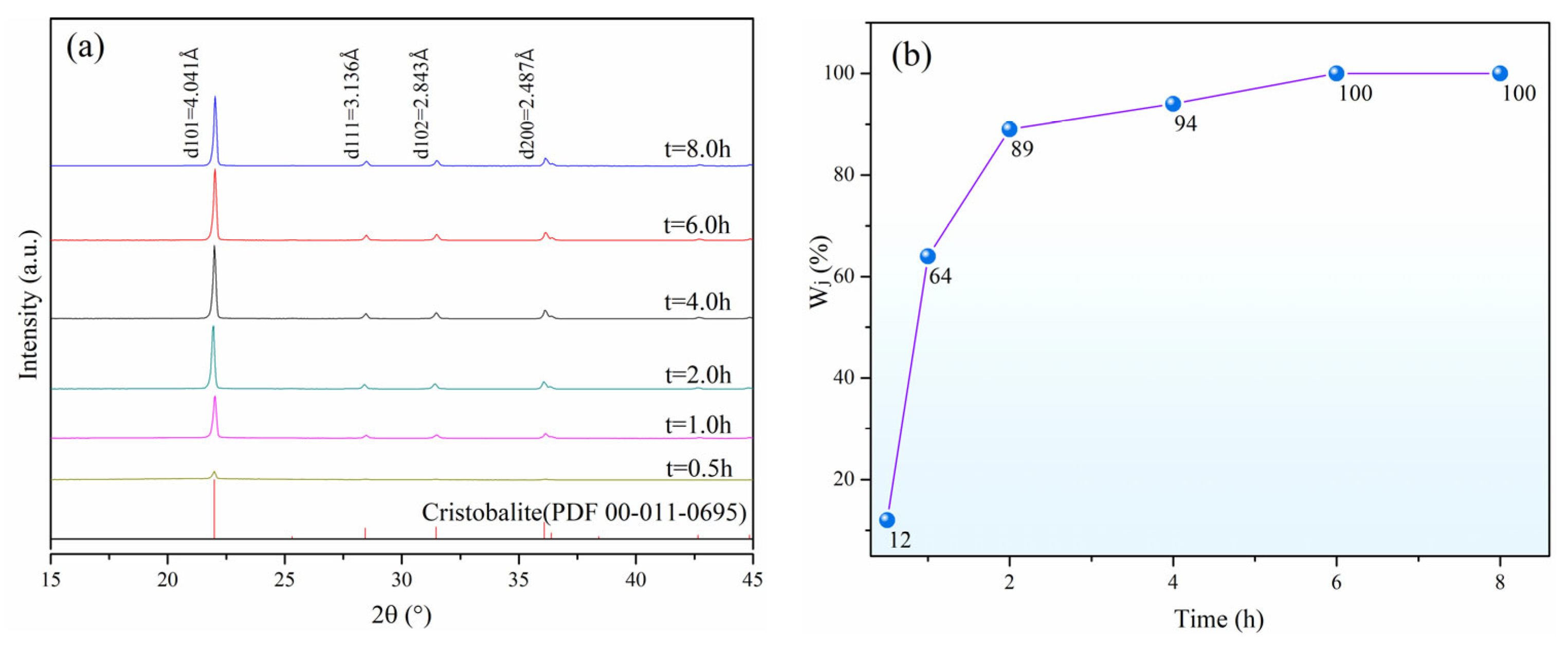 3.2. Effect of Calcination Time on Crystallization