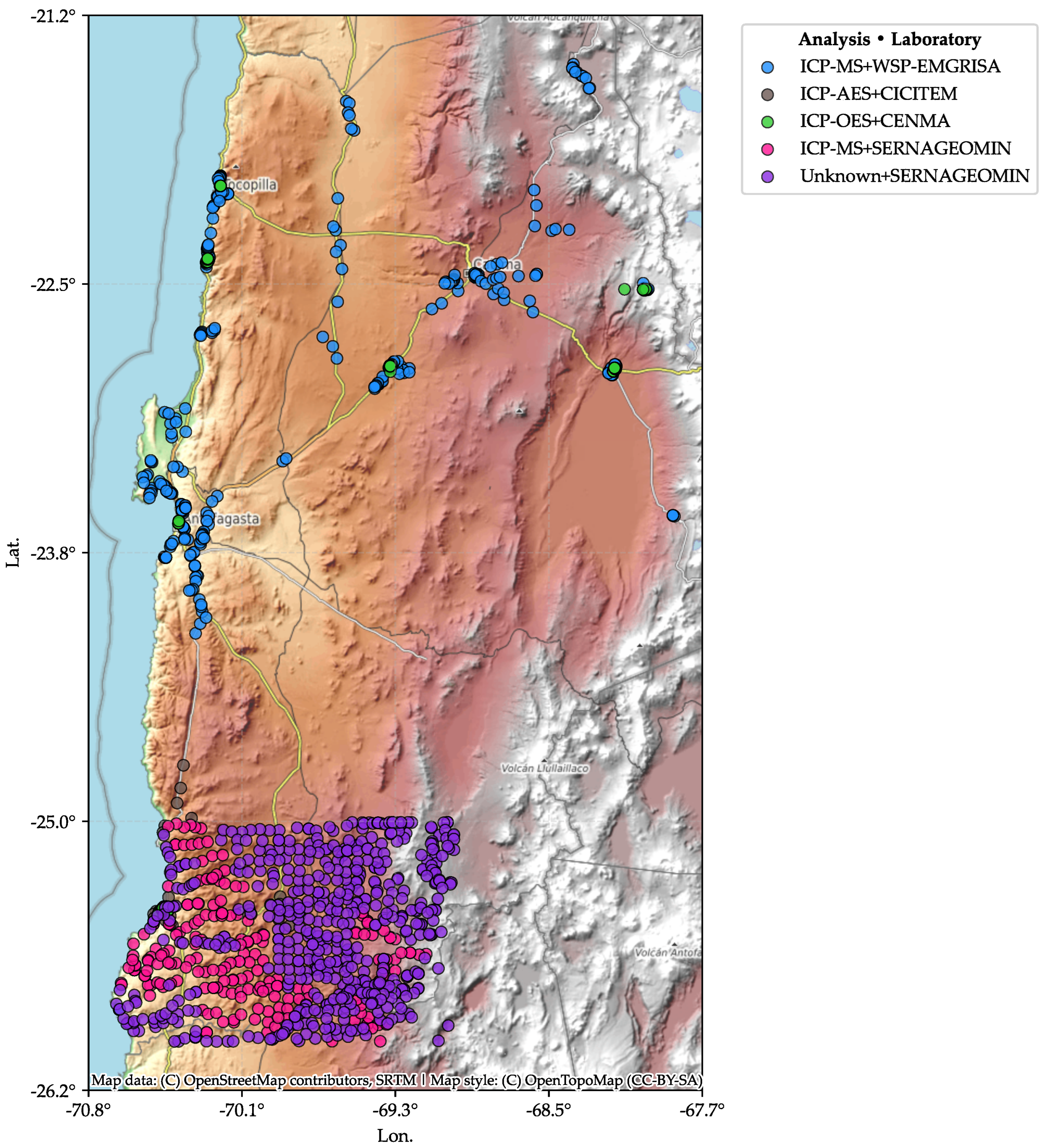 | Taltal | ICP-AES | CICITEM | J | Volcanic | Jurassic | Jurassic | 7 | 2 | 4 | 1 |