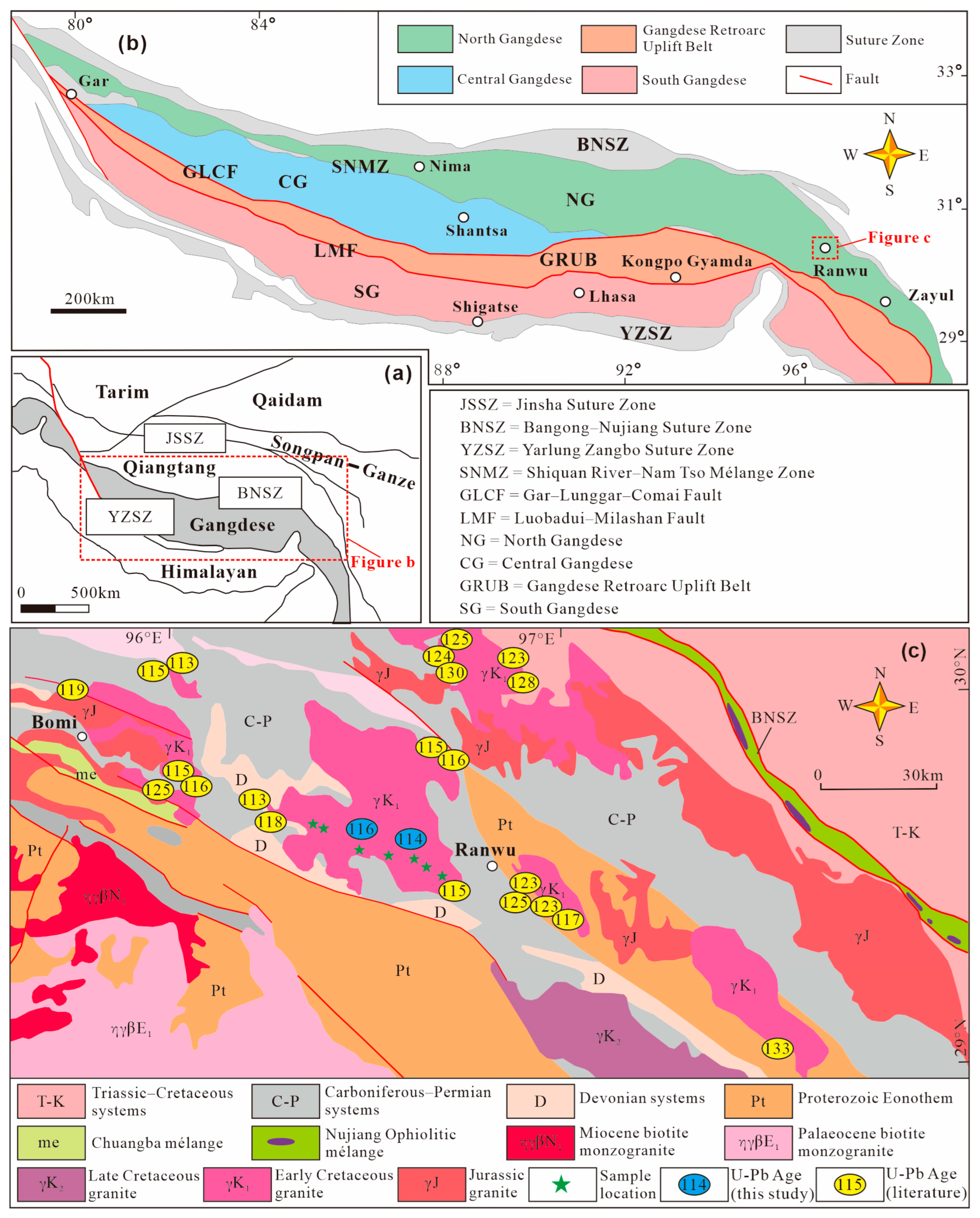 Yang X, Dong M, Wang Y, Teng C, Xiao D, Cao J, Chen X, Shao J. Chronology, Geochemistry, and Tectonic Implications of Early Cretaceous Granitoids in the Ranwu Area, Eastern Gangdese Belt. Minerals. 2025; 15(11):1188. https://doi.org/10.3390/min15111188