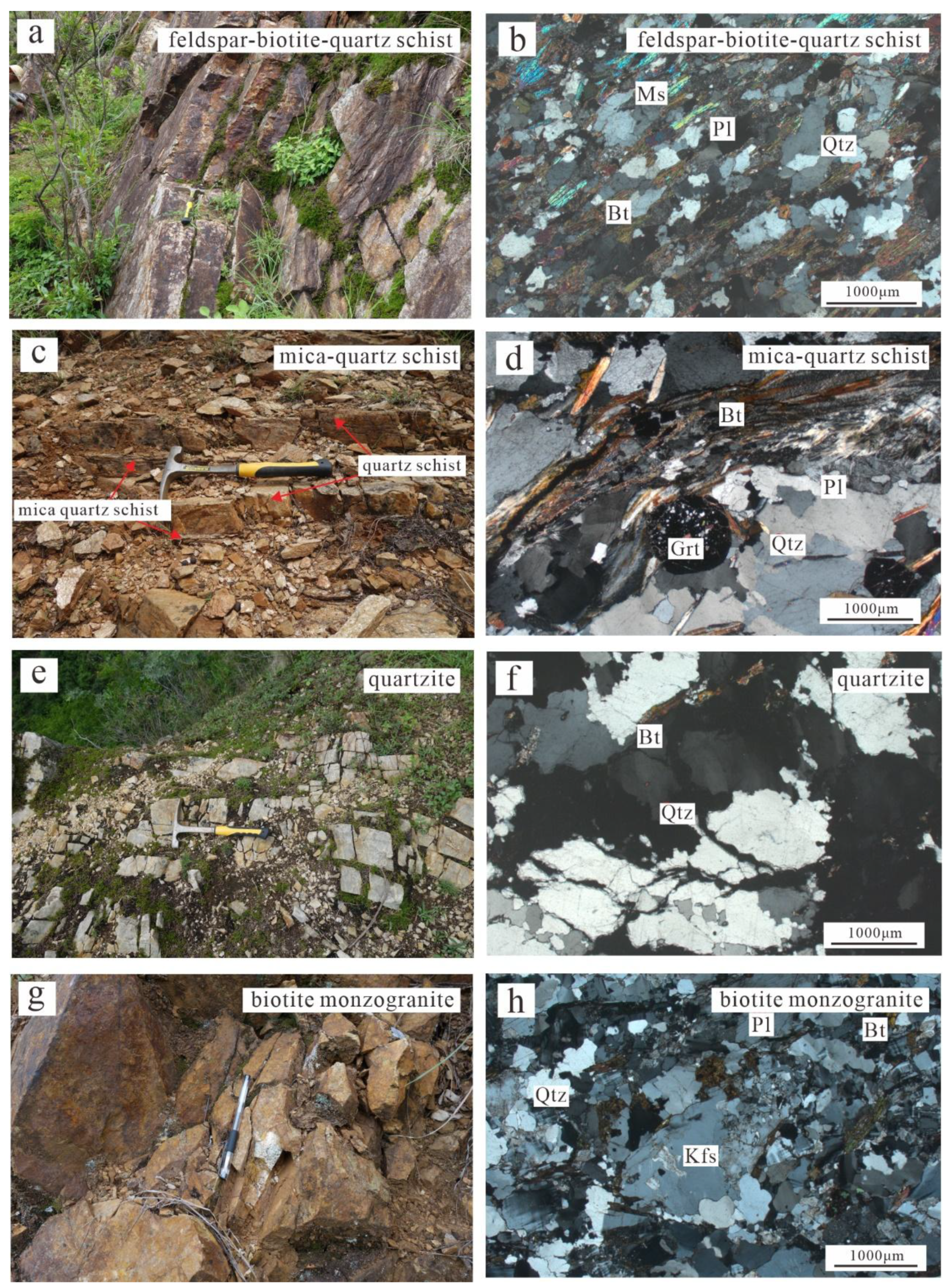- Deng, S.X. The Evolution of Metamorphism and Geochemistry for the Cangshan and Julin Groups in Central Yunnan, China; Guangzhou Institute of Geochemistry, Chinese Academy of Sciences: Guangzhou, China, 2000; (In Chinese with English Abstract). [Google Scholar]