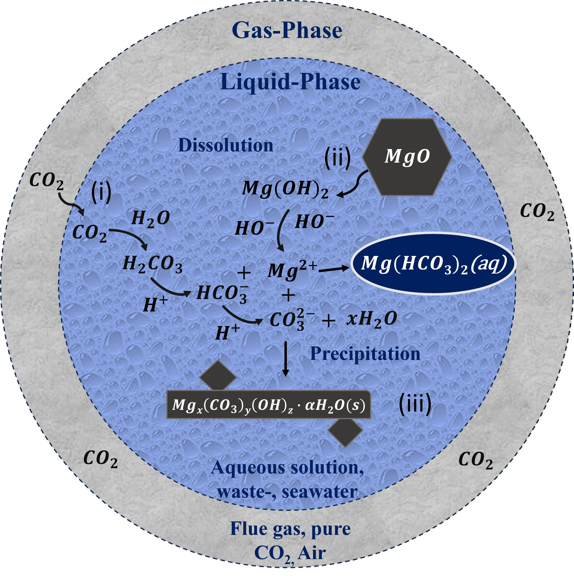 | Effect of CO2 partial pressure | Rapid carbonation at low pCO2 due to high solubility; limited further enhancement beyond saturation | Strongly dependent on pCO2; higher pCO2 accelerates Mg2+ release and favors stable carbonate precipitation such as Mgs | [70,80,81,82] |