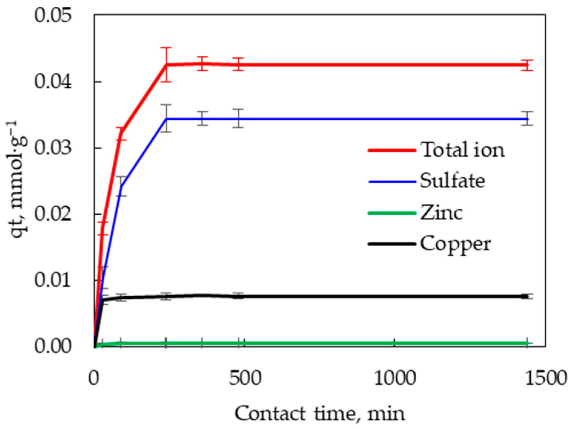 Santander M, Aravena H, Guzmán D, Valderrama L, Cárdenas E. Simultaneous Adsorption of Copper, Zinc, and Sulfate in a Mixture of Activated Carbon and Barite. Minerals. 2025; 15(11):1214. https://doi.org/10.3390/min15111214
