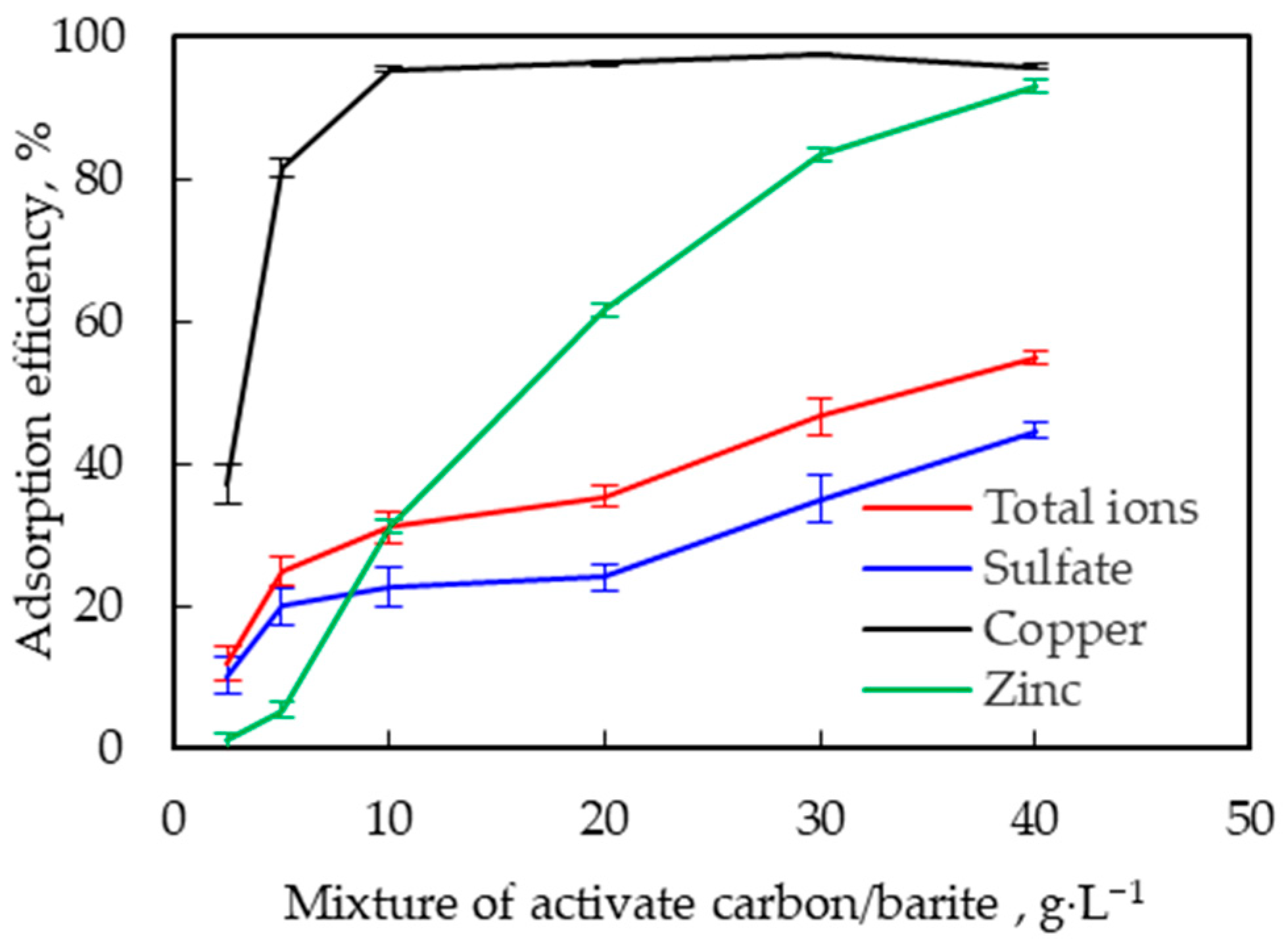 Simultaneous Adsorption of Copper, Zinc, and Sulfate in a Mixture of Activated Carbon and Barite