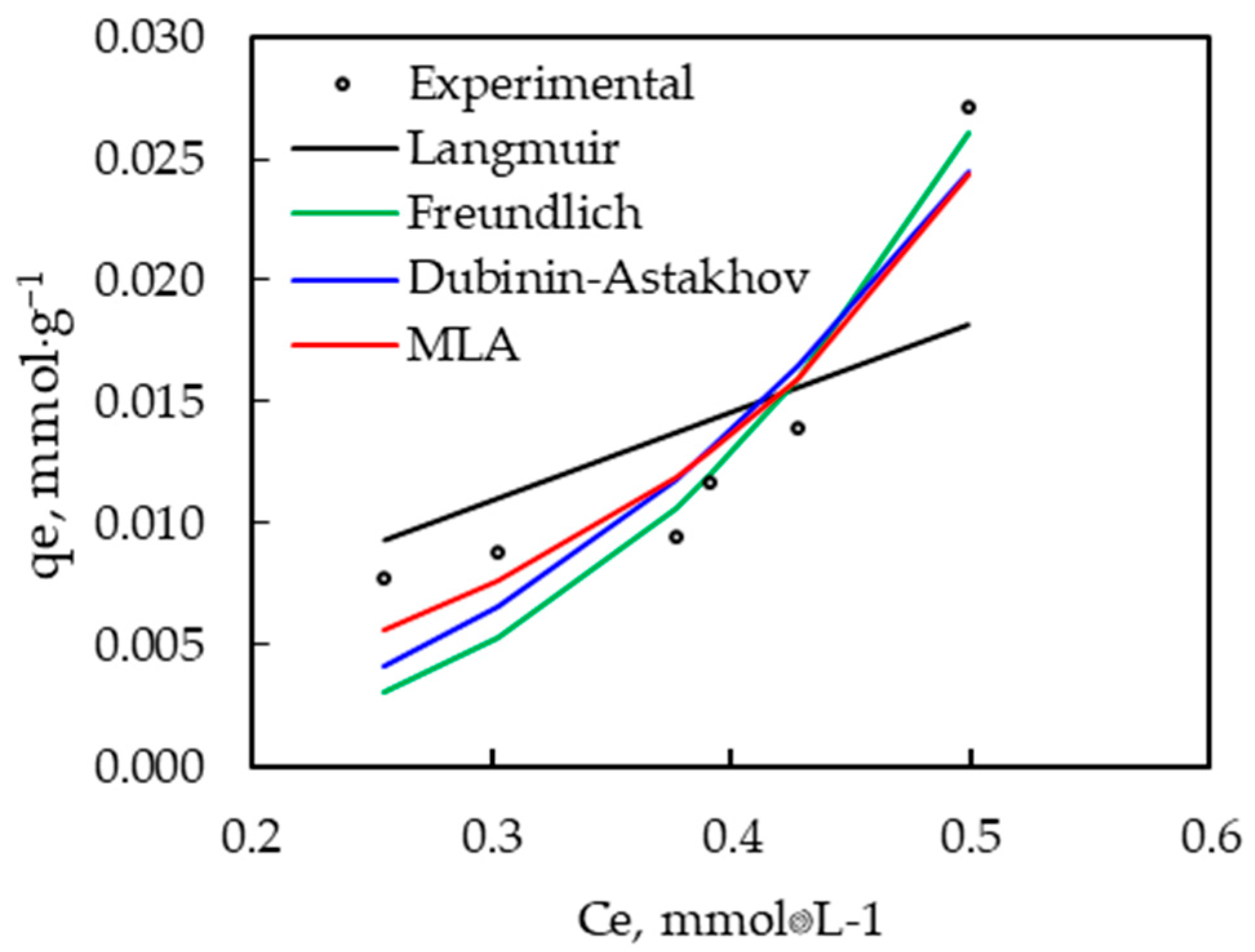 | Qmax, mmol·g−1 | 3.262 | KF, mmol·g−1 | 0.237 |