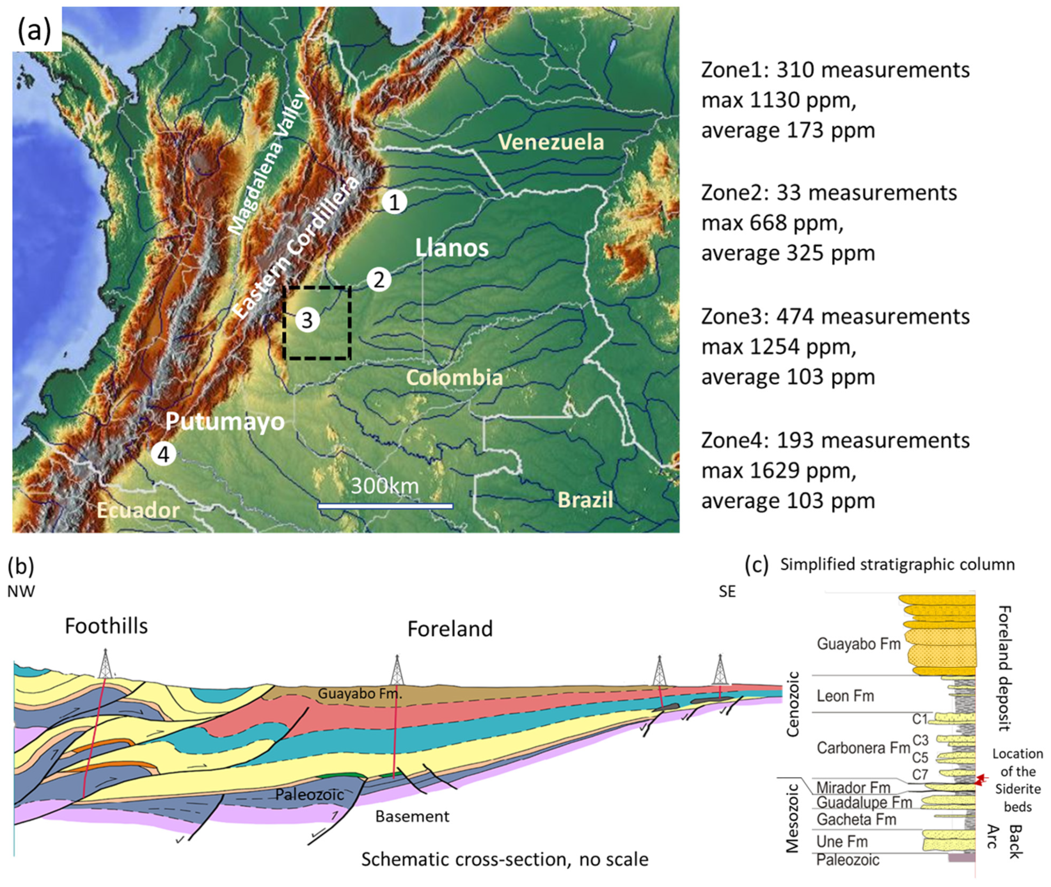 - Patiño, C.; Strąpoć, D.; Torres, O.; Mullins, O.; Bustos, U.; Bermudez, O.; López, A.; Trujillo, M.; Morales, H. First Downhole Sampling of a Natural Hydrogen Reservoir in Colombia. Front. Energy Res. 2024, 12, 1443269. [Google Scholar] [CrossRef]