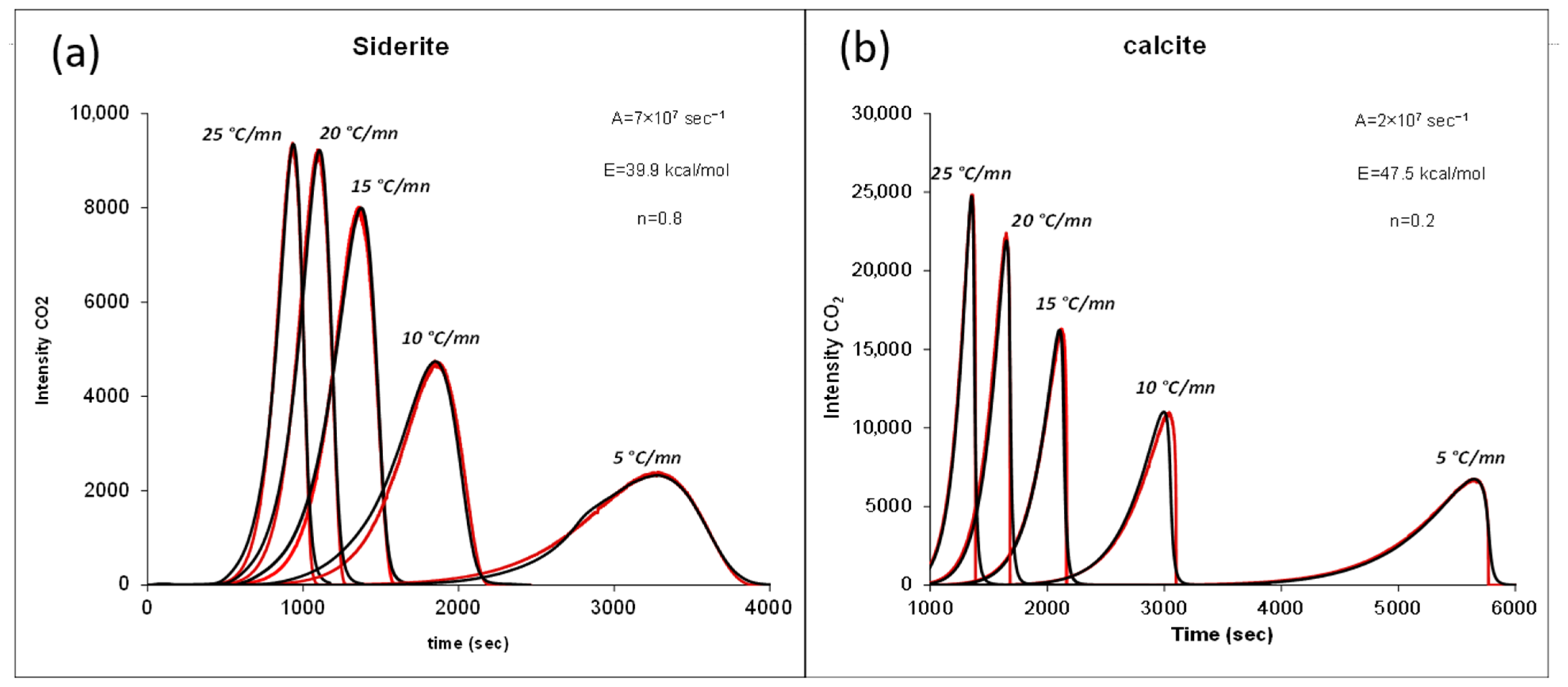 - Baudin, F.; Bouton, N.; Wattripont, A.; Carrier, X. Carbonates Thermal Decomposition Kinetics and Their Implications in Using Rock-Eval® Analysis for Carbonates Identification and Quantification. Sci. Technol. Energy Transit. 2023, 78, 38. [Google Scholar] [CrossRef]