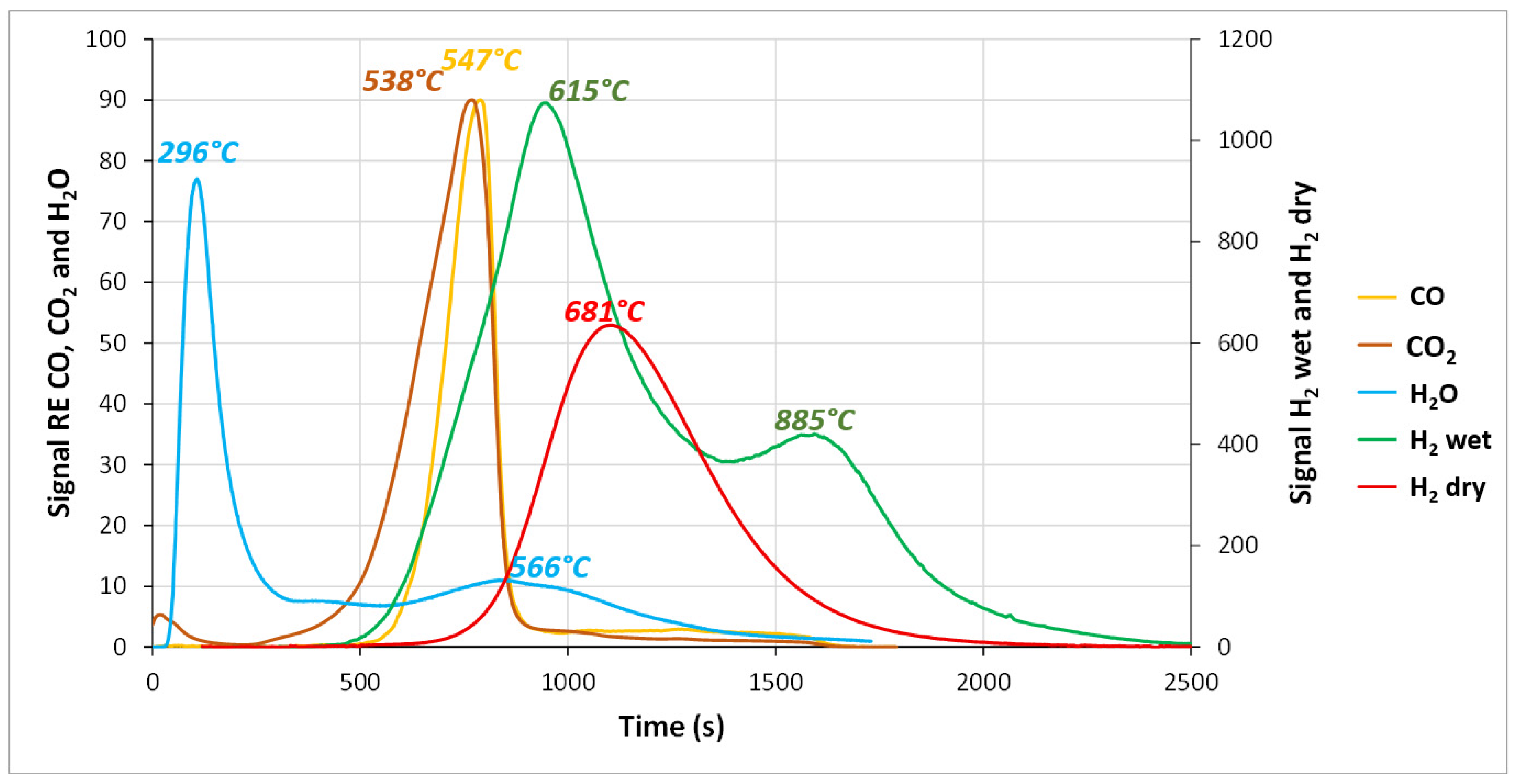 6.1. Potential of Siderite for the Generation of Hydrogen