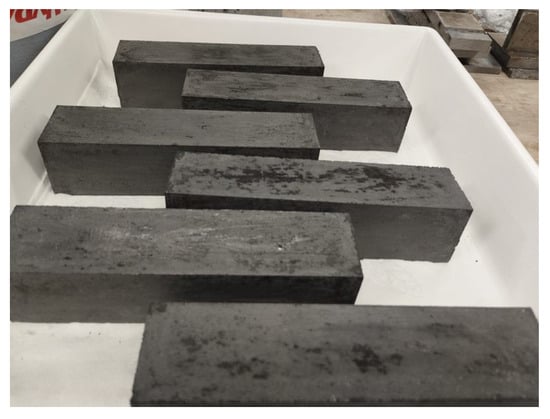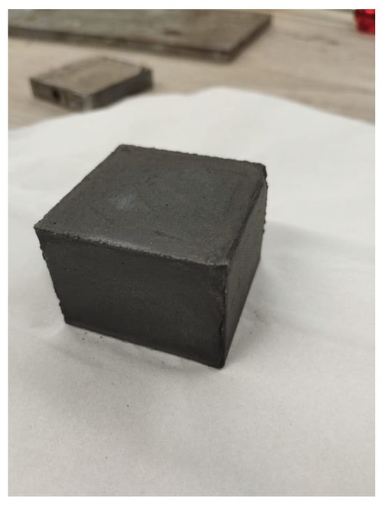 All specimens were cured under controlled conditions at 20 °C and 95% relative humidity. Due to their different setting behaviors, Ref GP samples were demolded after 24 h, while Aachen GP samples were demolded after 48 h. Figure 2 shows the Aachen GP cubic specimens (40 × 40 × 40 mm), and Figure 3 shows the corresponding prismatic specimens (40 × 40 × 160 mm).