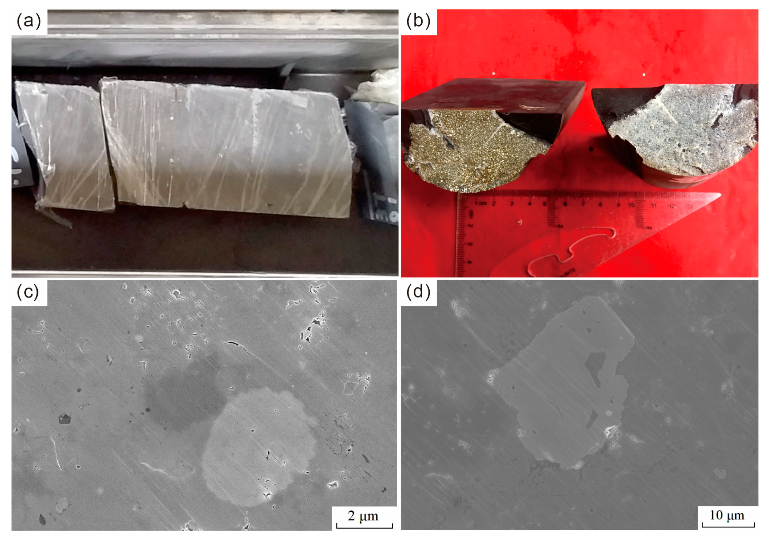For microstructural characterization, 12 representative samples were subjected to field emission scanning electron microscopy (FE-SEM). Each sample was trimmed to 8 × 8 × 3 mm and sequentially polished using ultrafine emery papers (30, 15, 9, 6, 3, and 1 μm) to minimize surface roughness prior to argon ion milling. This preparation is also used to ensure that the observed surface was parallel to the bedding plane. FE-SEM imaging was conducted using a Hitachi SU8220 field emission scanning electron microscope (Hitachi High-Tech Corporation, Tokyo, Japan) equipped with secondary electron (SE) and backscattered electron (BSE) detectors at the South China University of Technology. Sample surfaces were coated with a thin platinum layer to enhance conductivity during imaging.