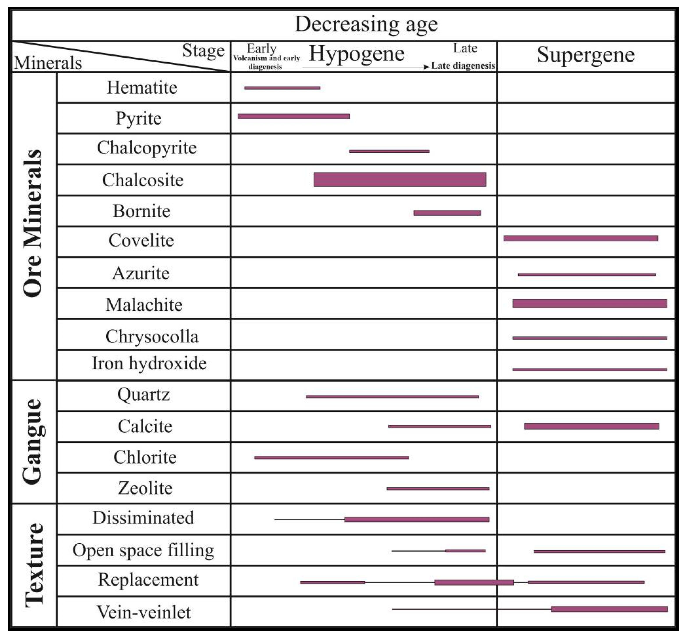 - During sulfide mineralization, the hydrothermal fluid expelled and dispersed the sulfate phase away from the vein system. The scarcity of sulfate minerals alongside sulfides may support this removal of sulfate-bearing fluids during or after mineralization. This scenario is consistent with acidic and oxidizing conditions that facilitate sulfide precipitation from sulfur complexes and promote sulfate phase separation.