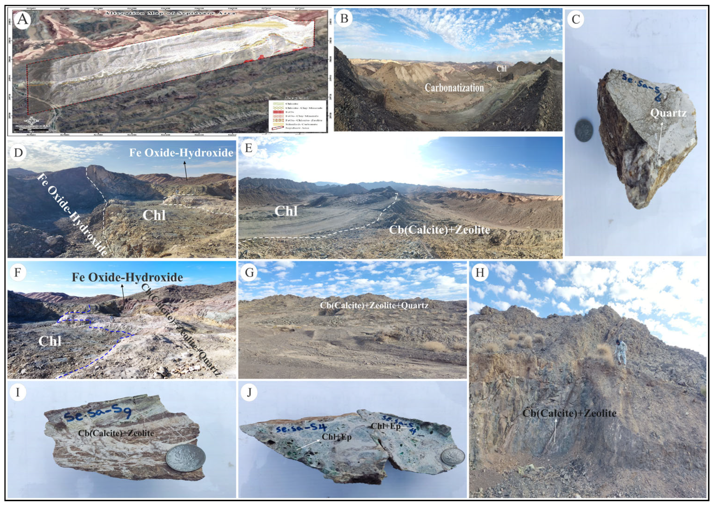 - Rezapanah Khour, H. Investigation of Geology, Alteration and the Cu Mineralization in Cheshmeh-Hadi Area, Bardaskan (Khorasan Razavi Province, Northeast Iran). Unpublished Master’s Thesis, Shahid Bahonar University of Kerman, Kerman, Iran, 2016; 148p. (In Persian with English abstract). [Google Scholar]