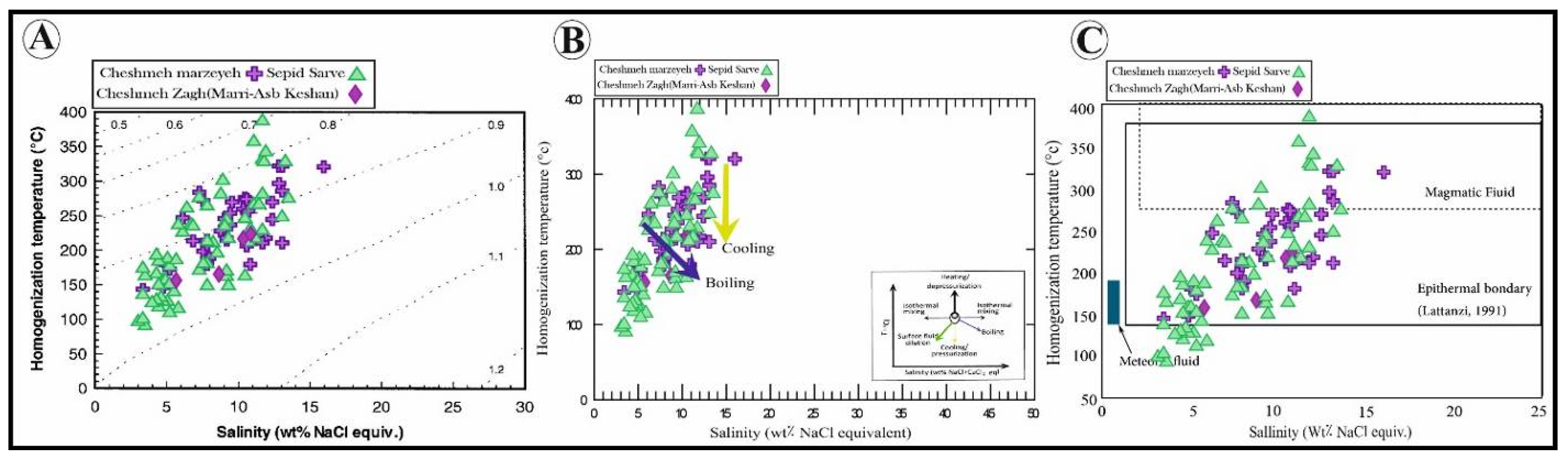 | Se-Sa-S15-2 | Chalcocite-Bornite-Chalcopyrite-Covellite-Silica(Quartz) | −23/9 ± 0/3 | 100 | 193/69 | 280 | 0/4 | 0/2 | 0/2 | −24/1 ± 0/3 |