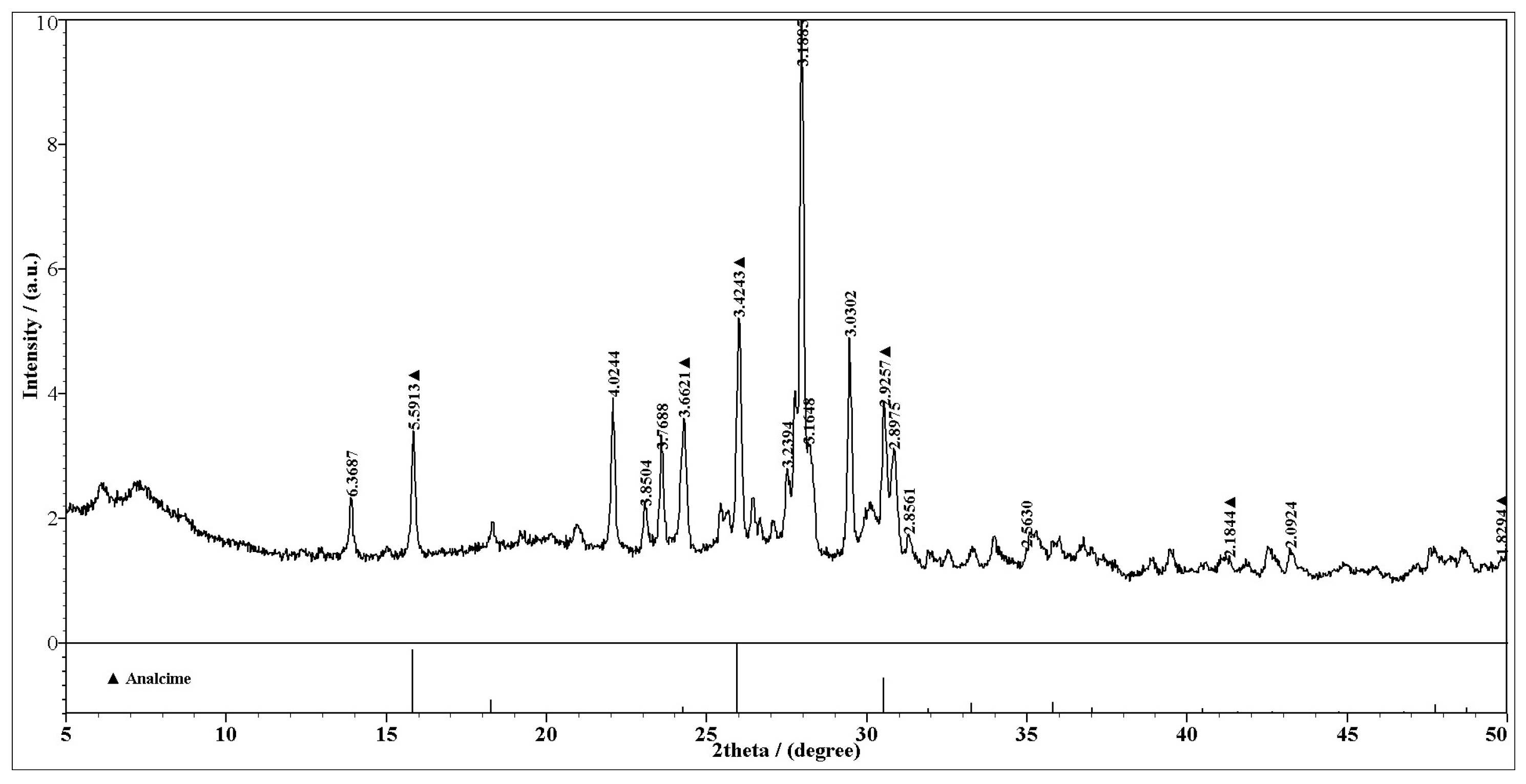 Figure A1. XRD spectra of a sandy conglomerate sample from well zj4 at a depth of 4439.14 m, showing characteristic peaks of analcime.