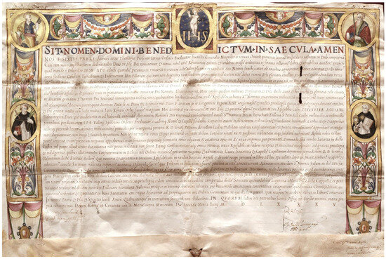 - The parchment is an important document from the Counter-Reformation period, where the strength of the orthodoxy of the Catholic Church expressed by the Dominican Order is highlighted, starting from the title (Sit Nomine Domini Benedictum in Saecula Amen; Be the Name of God Blessed Forever Amen).