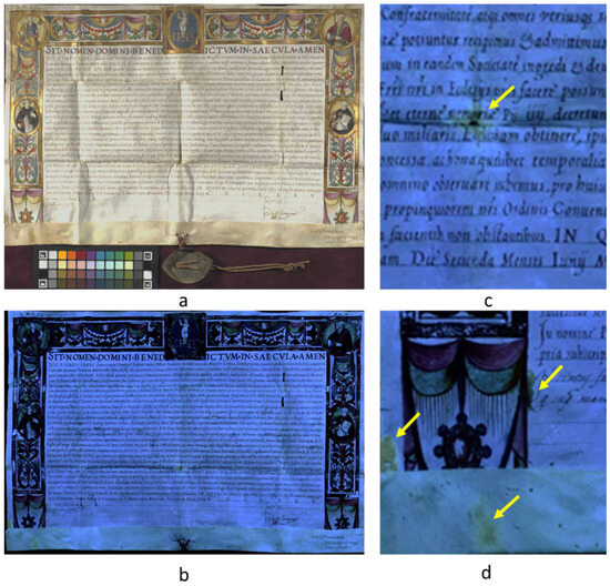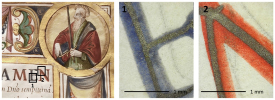 - Mercuri, F.; Buonora, P.; Cicero, C.; Helas, P.; Manzari, F.; Marinelli, M.; Paoloni, S.; Pasqualucci, A.; Pinzari, F.; Romani, M.; et al. Metastructure of illuminations by infrared thermography. J. Cult. Herit. 2018, 31, 53–62. [Google Scholar] [CrossRef]