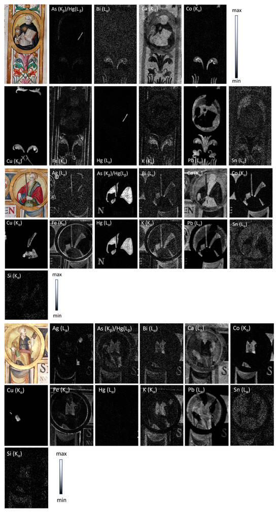- Turner, N.K.; Patterson, C.S.; MacLennan, D.K.; Trentelman, K. Visualizing underdrawings in medieval manuscript illuminations with macro-X-ray fluorescence scanning. X-Ray Spectrom. 2019, 48, 251–261. [Google Scholar] [CrossRef]