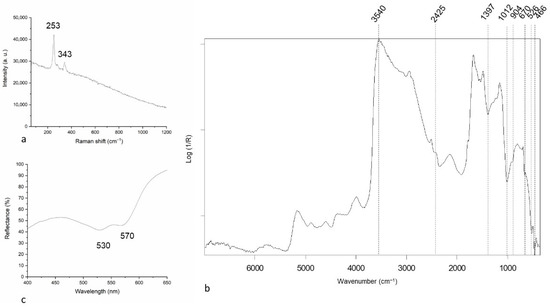 - Muralha, V.S.F.; Burgio, L.; Clark, R.J.H. Raman spectroscopy analysis of pigments on 16–17th c. Persian manuscripts. Spectrochim. Acta Part A Mol. Biomol. Spectrosc. 2012, 92, 21–28. [Google Scholar] [CrossRef] [PubMed]