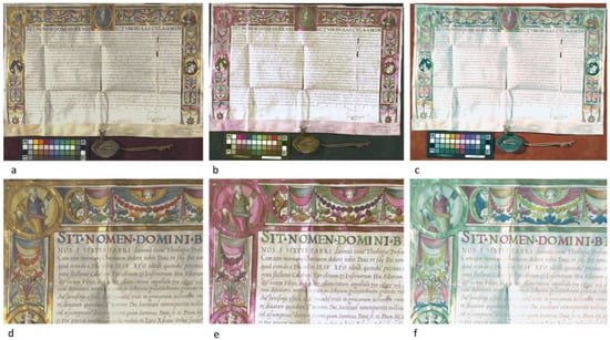 - Pronti, L.; Perino, M.; Cursi, M.; Santarelli, M.L.; Felici, A.C.; Bracciale, M.P. Characterization and Digital Restauration of XIV-XV Centuries Written Parchments by Means of Nondestructive Techniques: Three Case Studies. J. Spectrosc. 2018, 2018, 1–14. [Google Scholar] [CrossRef]