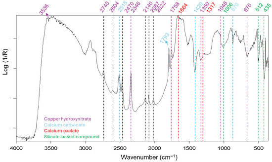 - Rosi, F.; Cartechini, L.; Sali, D.; Miliani, C. Recent trends in the application of Fourier Transform Infrared (FT-IR) spectroscopy in Heritage Science: From micro- to non-invasive FT-IR. Phys. Sci. Rev. 2019, 4, 20180006. [Google Scholar] [CrossRef]