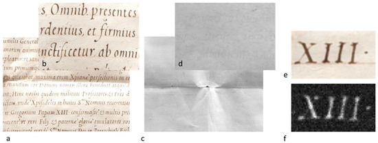- Perino, M.; Pronti, L.; Moffa, C.; Rosellini, M.; Felici, A.C. New Frontiers in the Digital Restoration of Hidden Texts in Manuscripts: A Review of the Technical Approaches. Heritage 2024, 7, 683–696. [Google Scholar] [CrossRef]