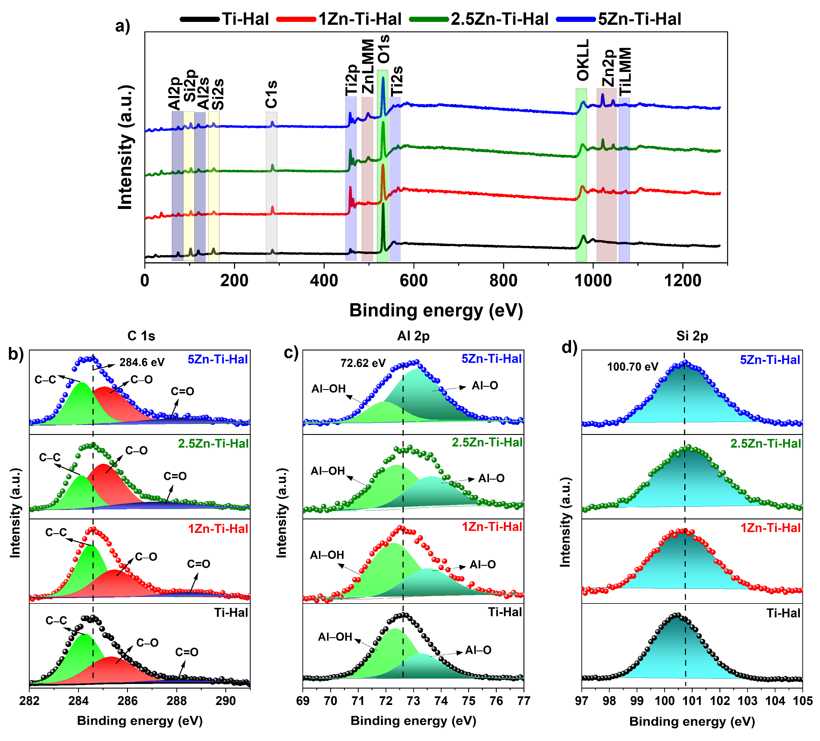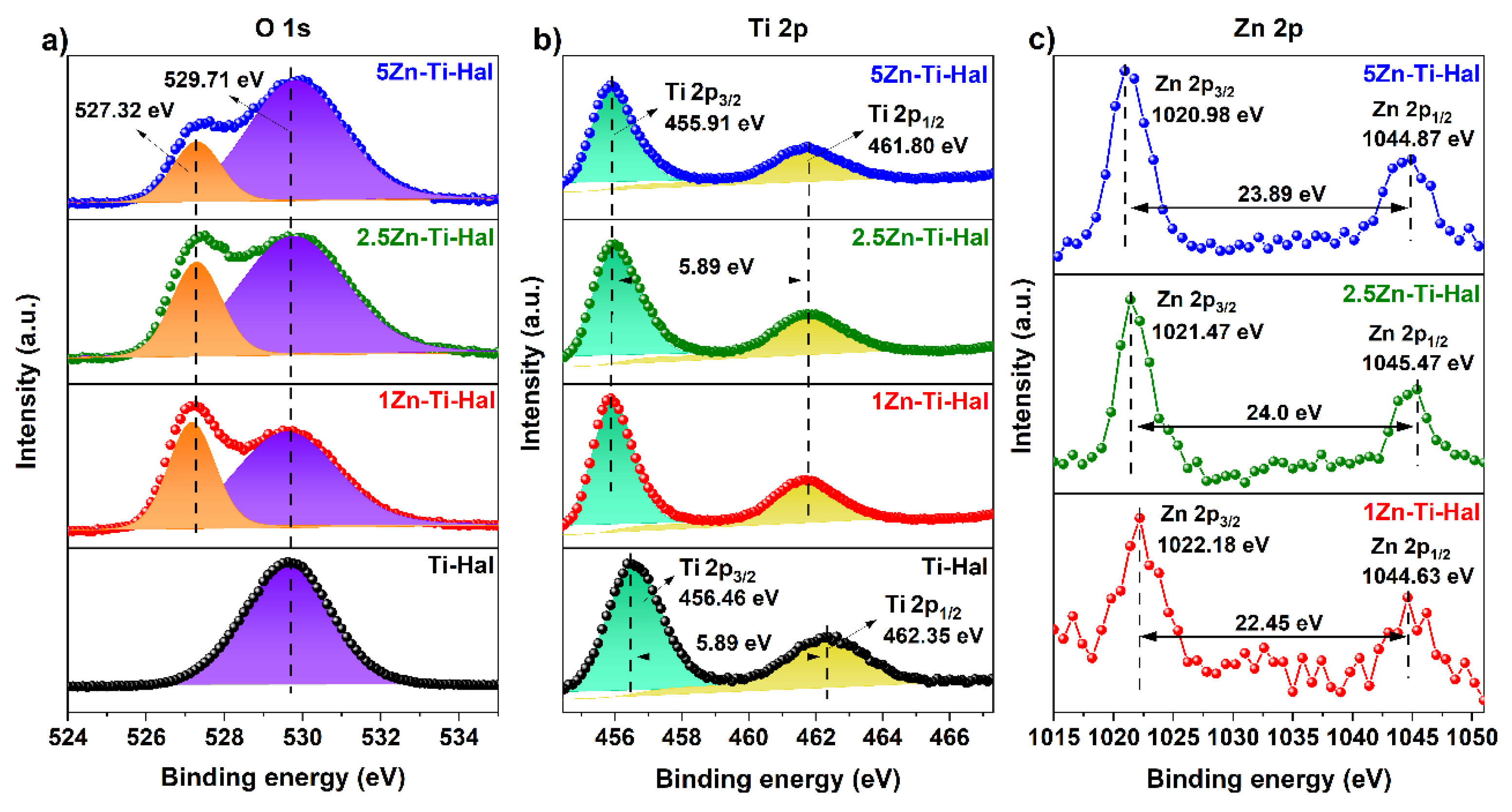 | 2.5Zn-Ti-Hal | 35.14 | 34.76 | 24.09 | 4.69 | 0.58 | 0.27 | 0.46 |
