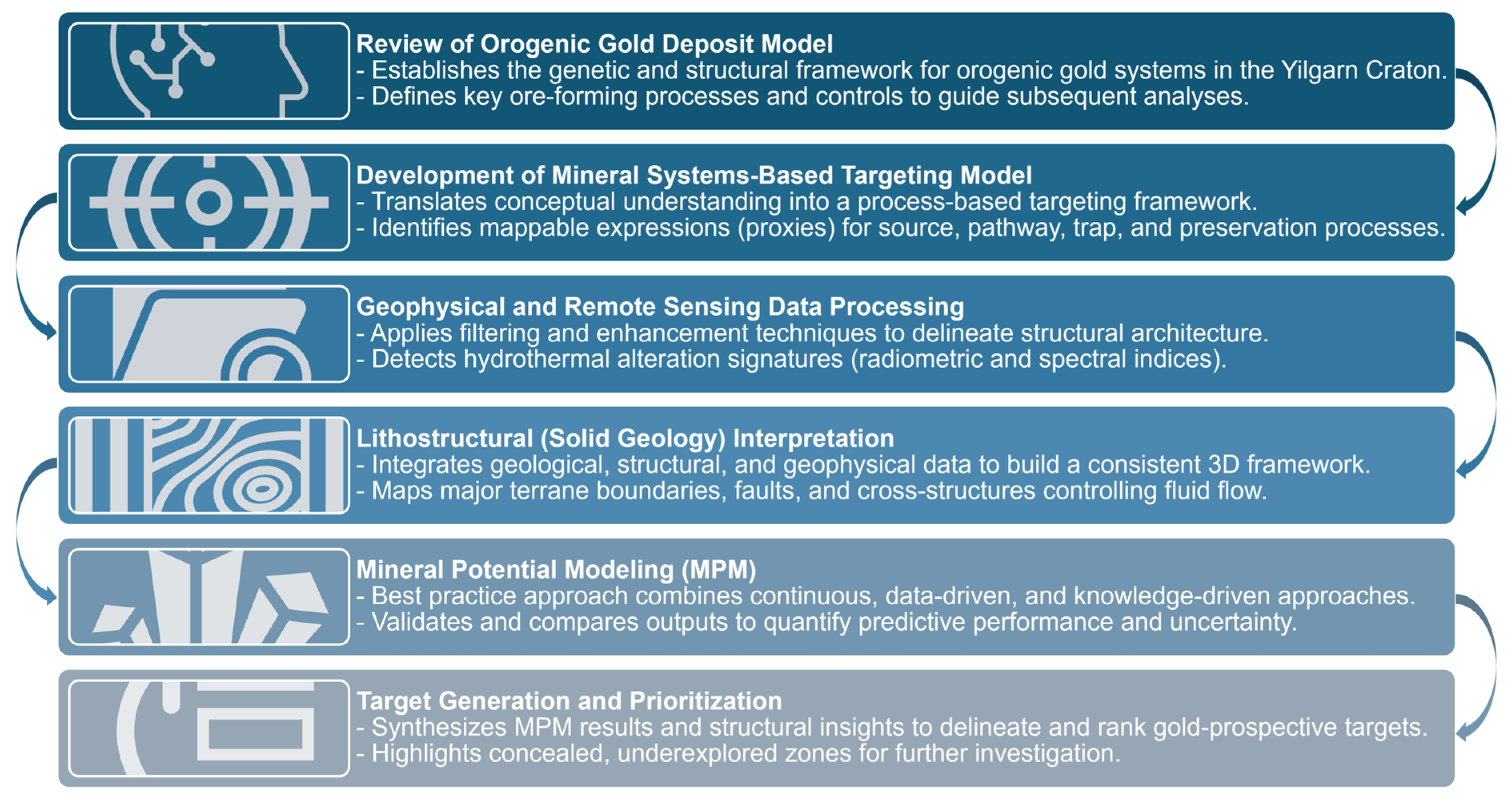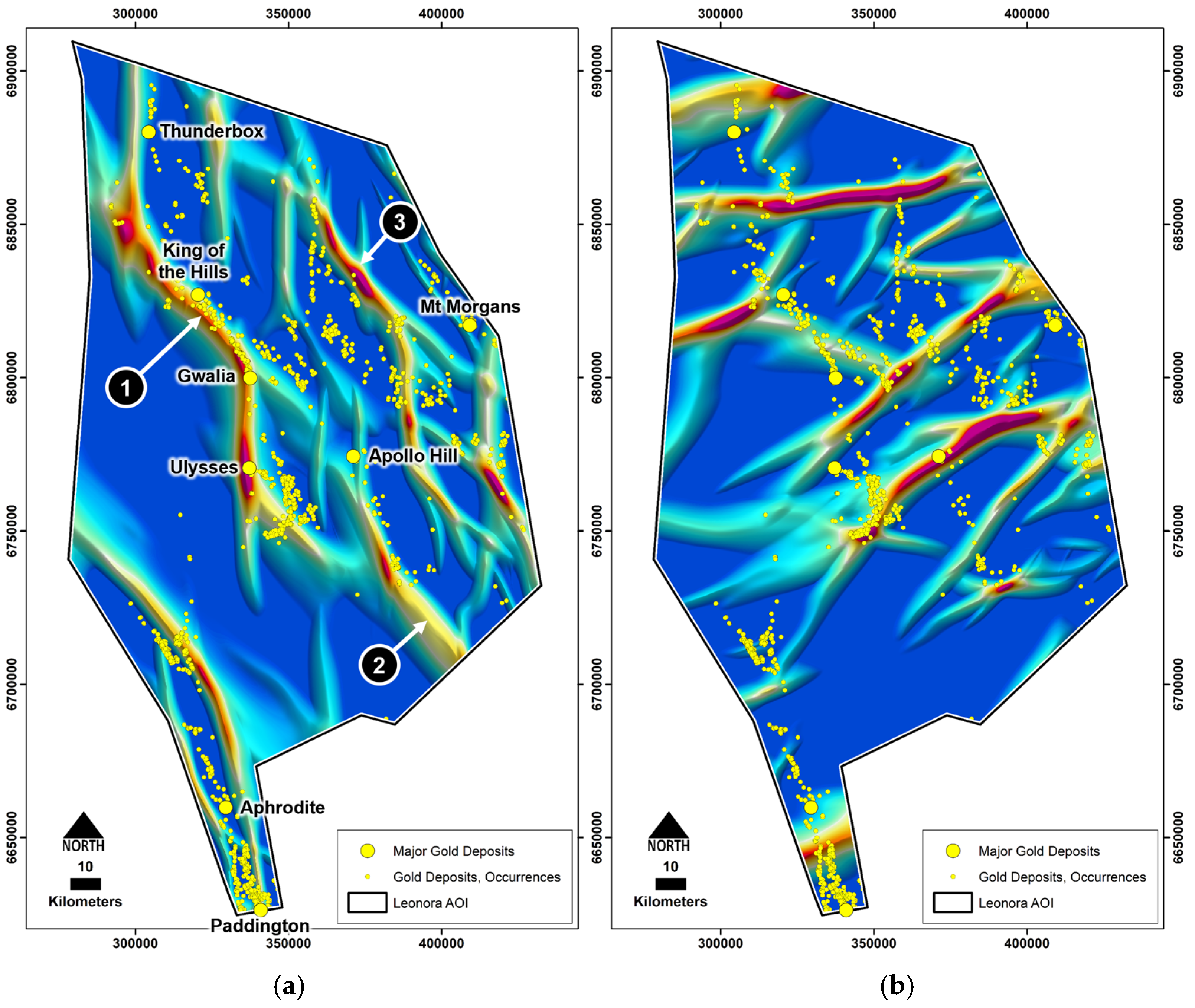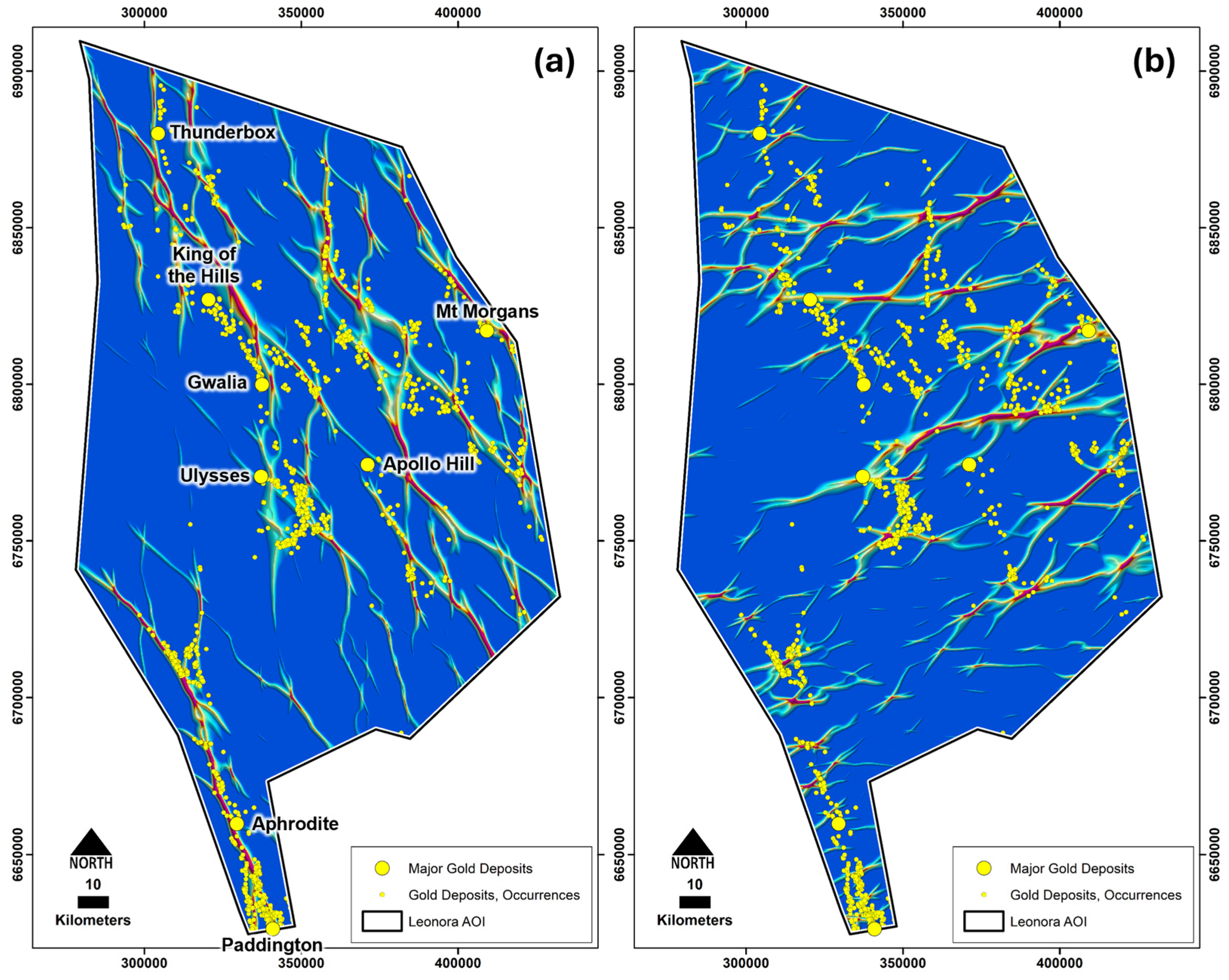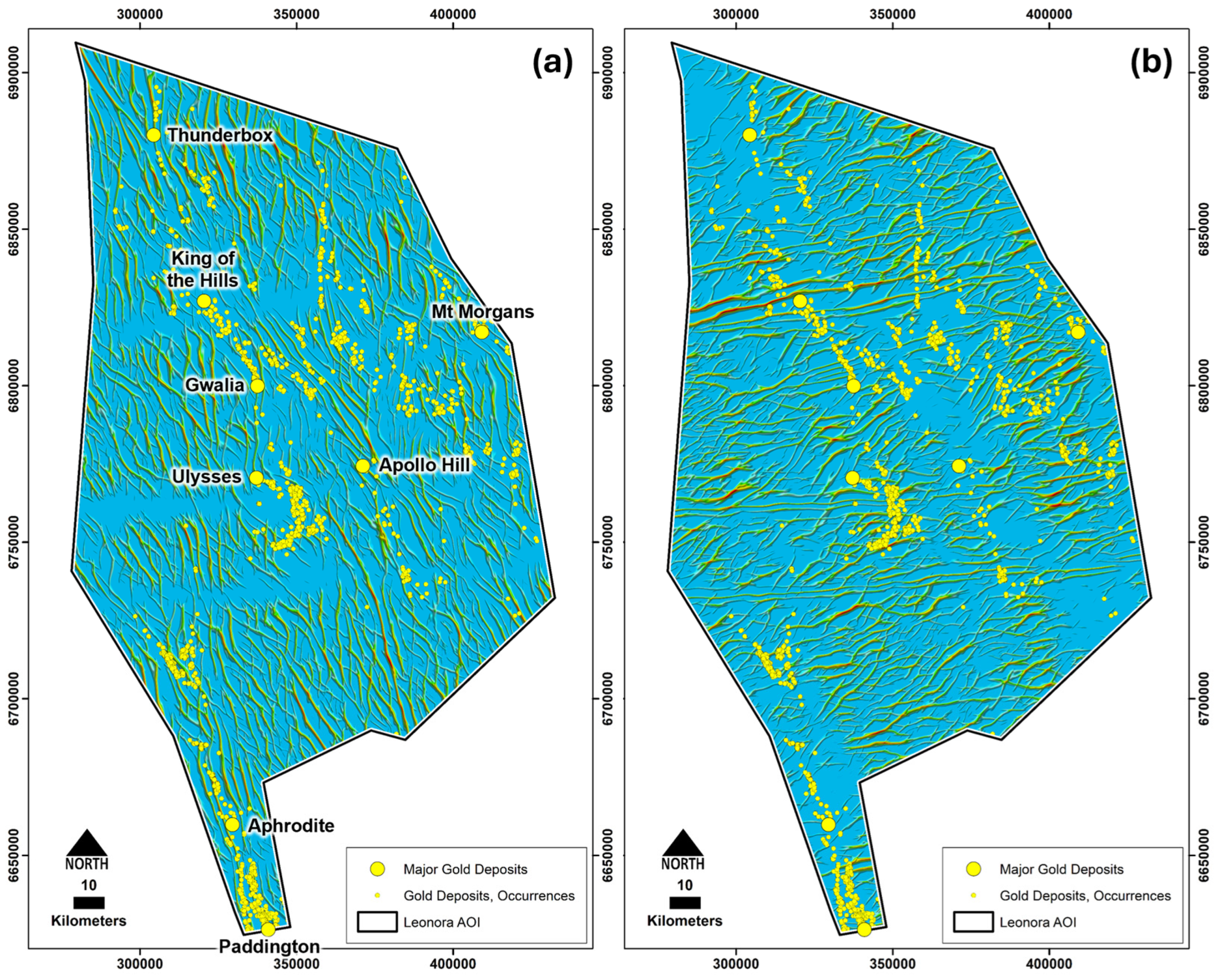 - Exploration implications: Deep-seated trans-lithospheric and cross-belt faults are confirmed as primary ore controls in the Yilgarn Craton. Integrating geophysical enhancement, structural reconstruction, and mineral systems-based modeling provides a quantitative, reproducible framework for regional-scale targeting. This approach effectively maps cryptic crustal architecture, reducing both the exploration risk and search space.