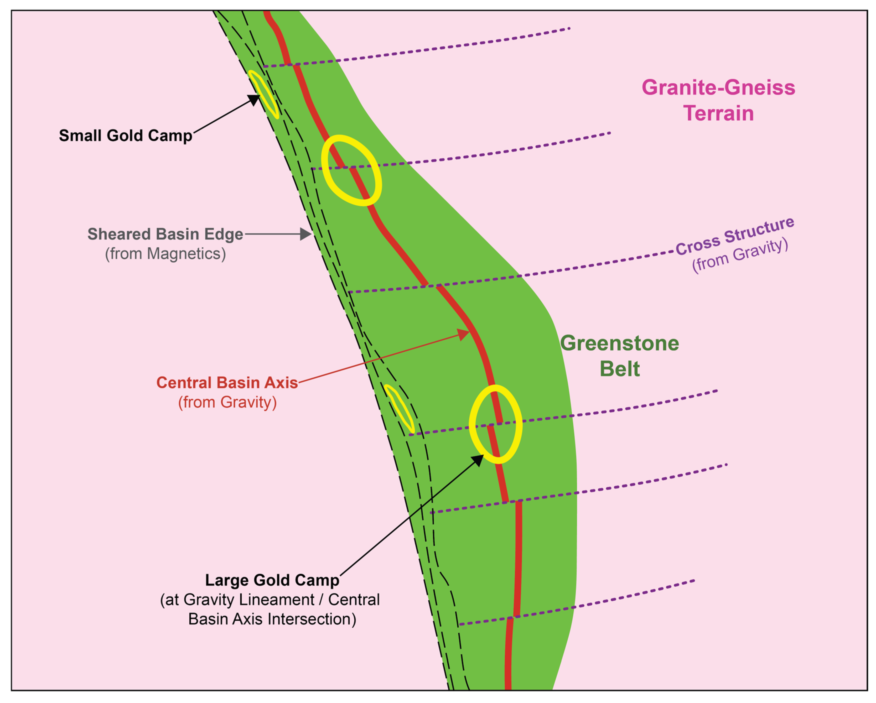- Geophysical insights: Gravity and magnetic data reveal concealed structural controls. Belt-parallel gravity ridges correspond to thickened mafic–ultramafic roots of inverted greenstone basins, the most prospective settings for multi-million-ounce systems. Gravity edges and magnetic edges delineate fault zones and granite–greenstone contacts. Major deposits such as Thunderbox, King of the Hills, Gwalia, Ulysses, and Paddington occur along these edges, indicating previously unrecognized cryptic crustal boundaries.