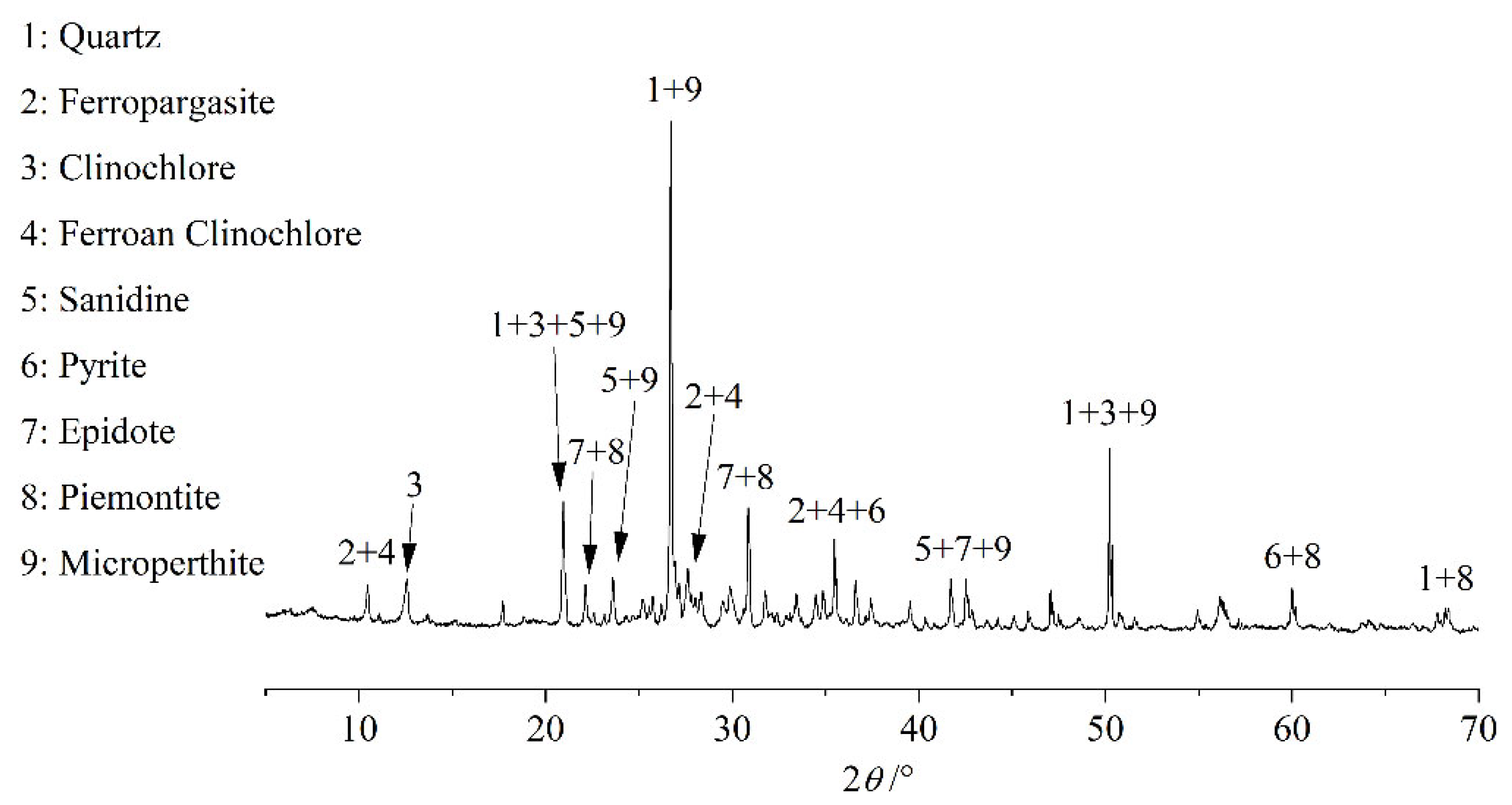 - Yao, Z.; Kashani, A.; Rawal, A.; Song, H.; Kim, T. Heat-induced phase transitions in mining tailings to create alternative supplementary cementitious materials. Resour. Conserv. Recycl. 2024, 210, 107818. [Google Scholar] [CrossRef]