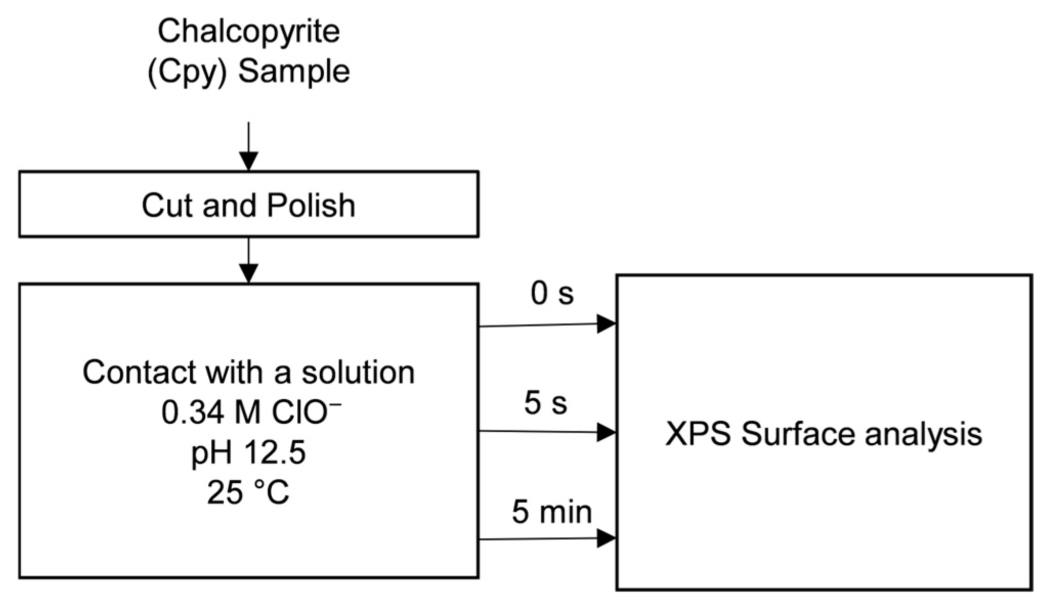 - Yin, Q.; Vaughan, D.J.; England, K.E.R.; Kelsall, G.H.; Brandona, N.P. Surface Oxidation of Chalcopyrite (CuFeS2) in Alkaline Solutions. J. Electrochem. Soc. 2000, 147, 2945–2951. [Google Scholar] [CrossRef]