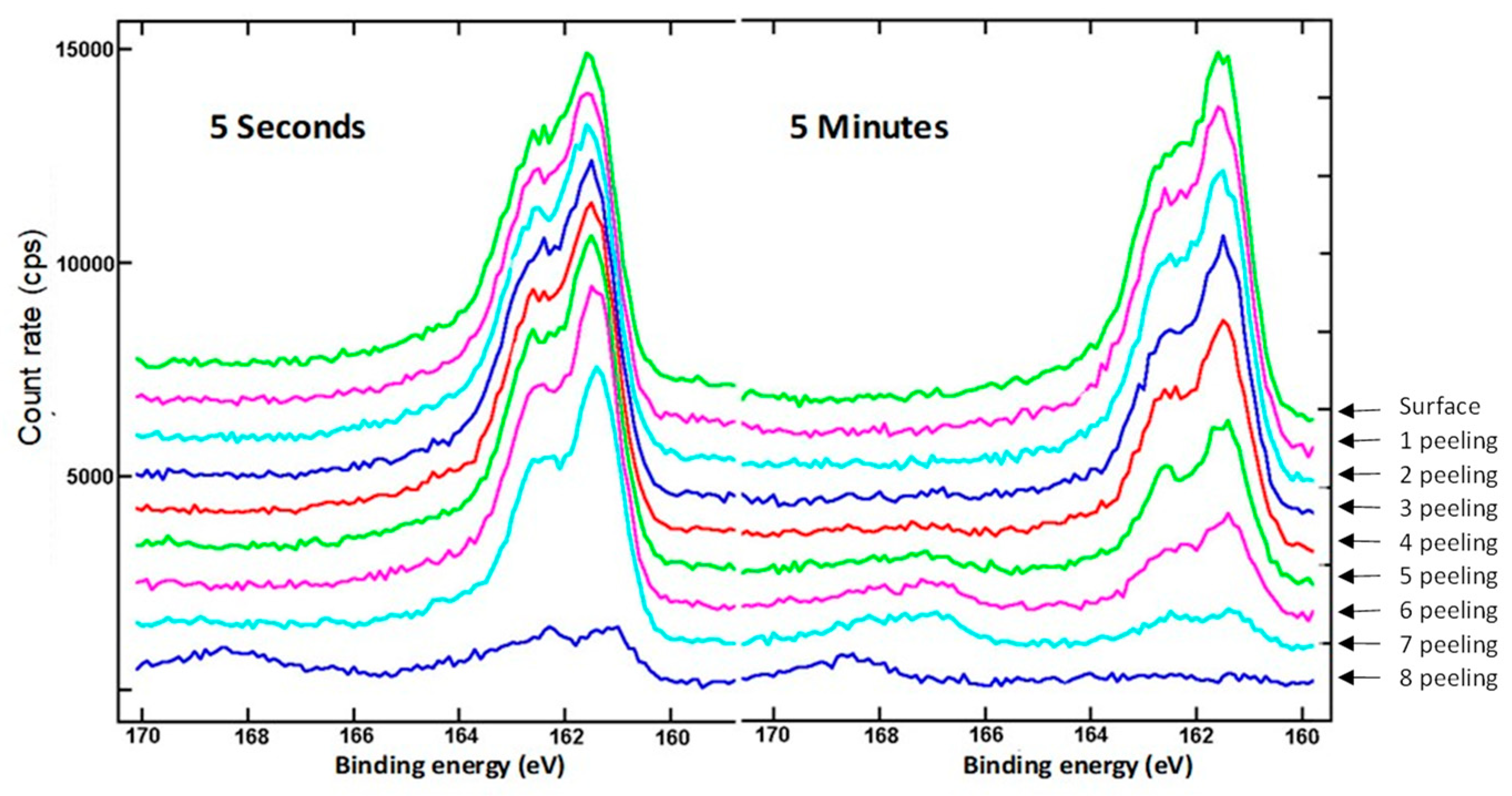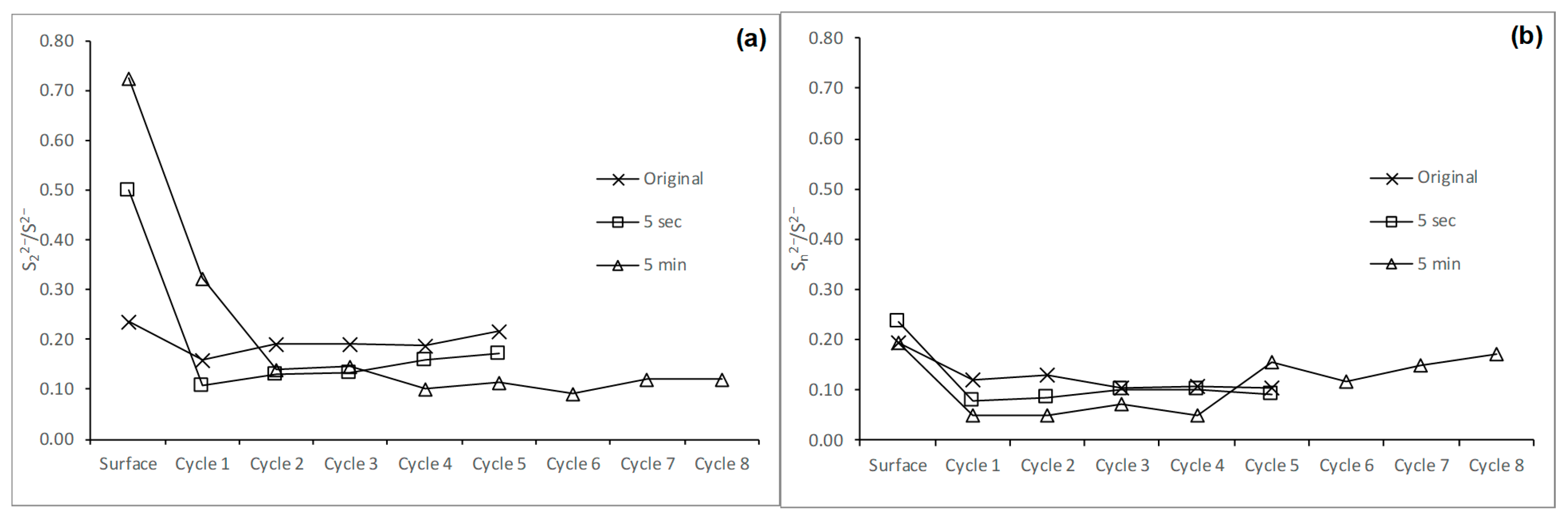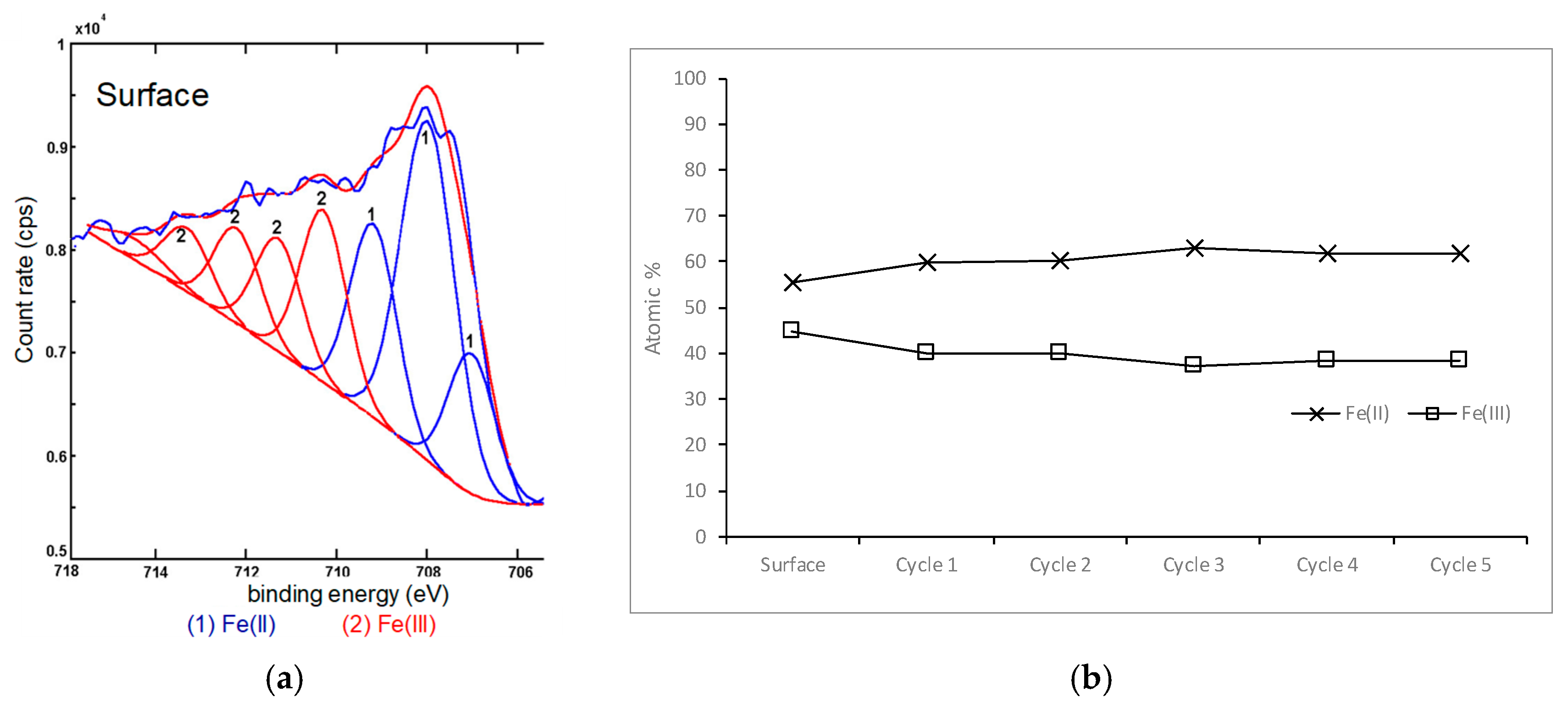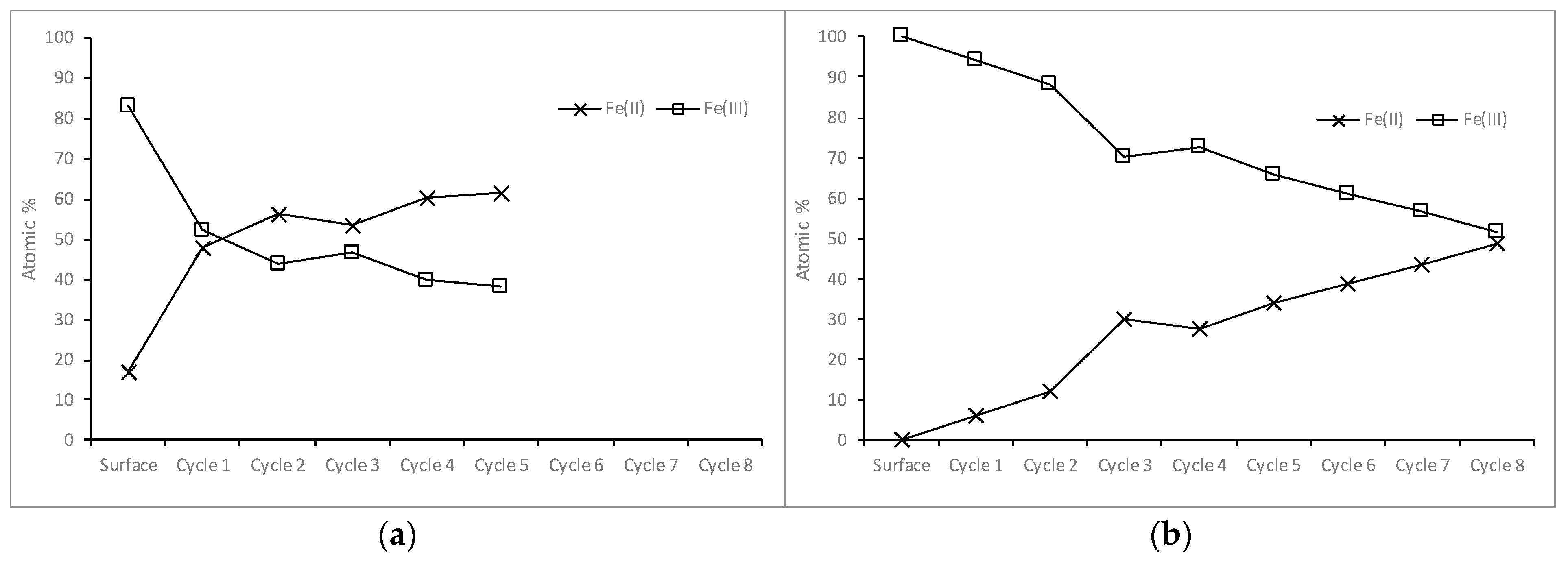 3.2.3. Iron in the Samples Leached for Five Seconds and Five Minutes