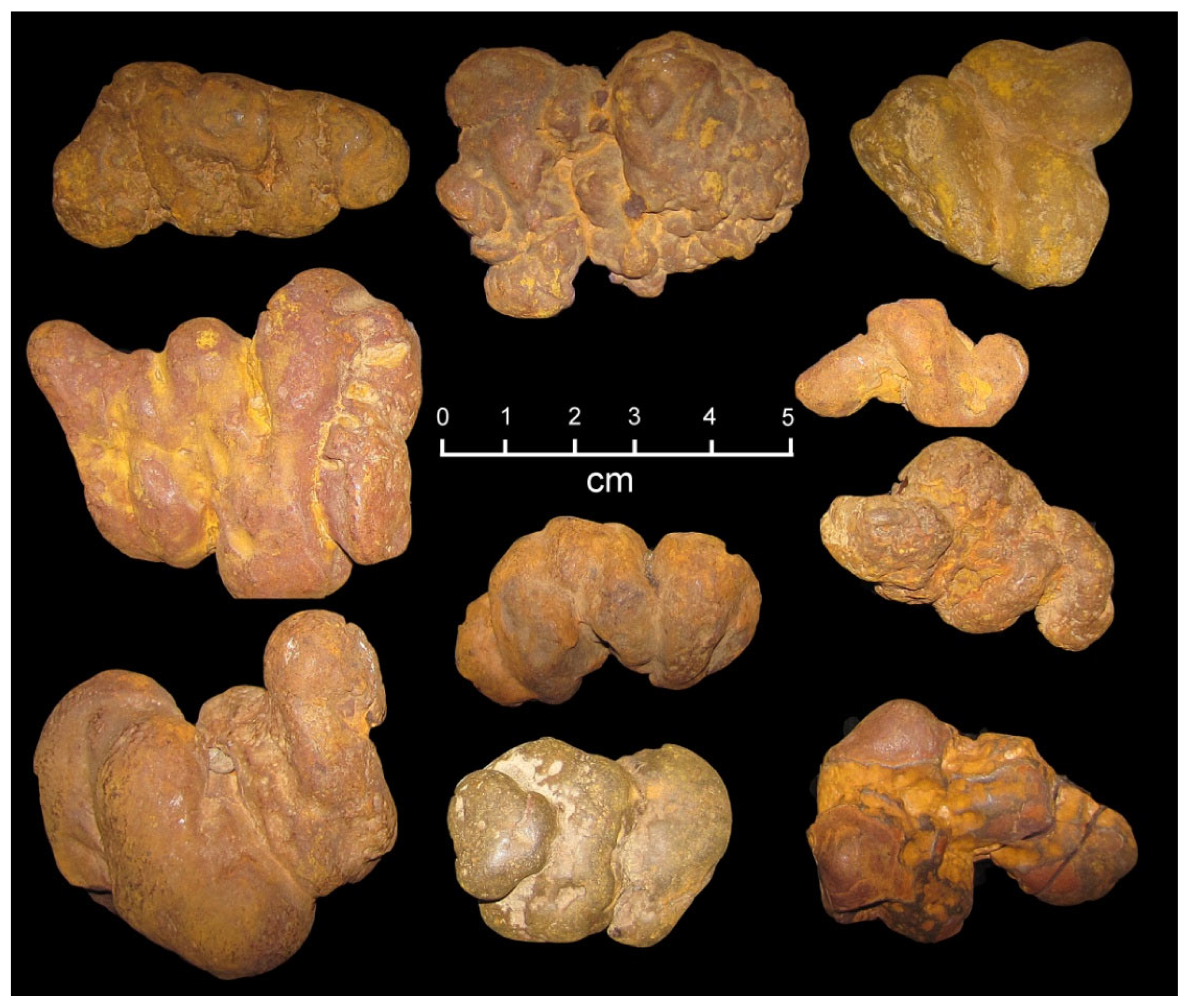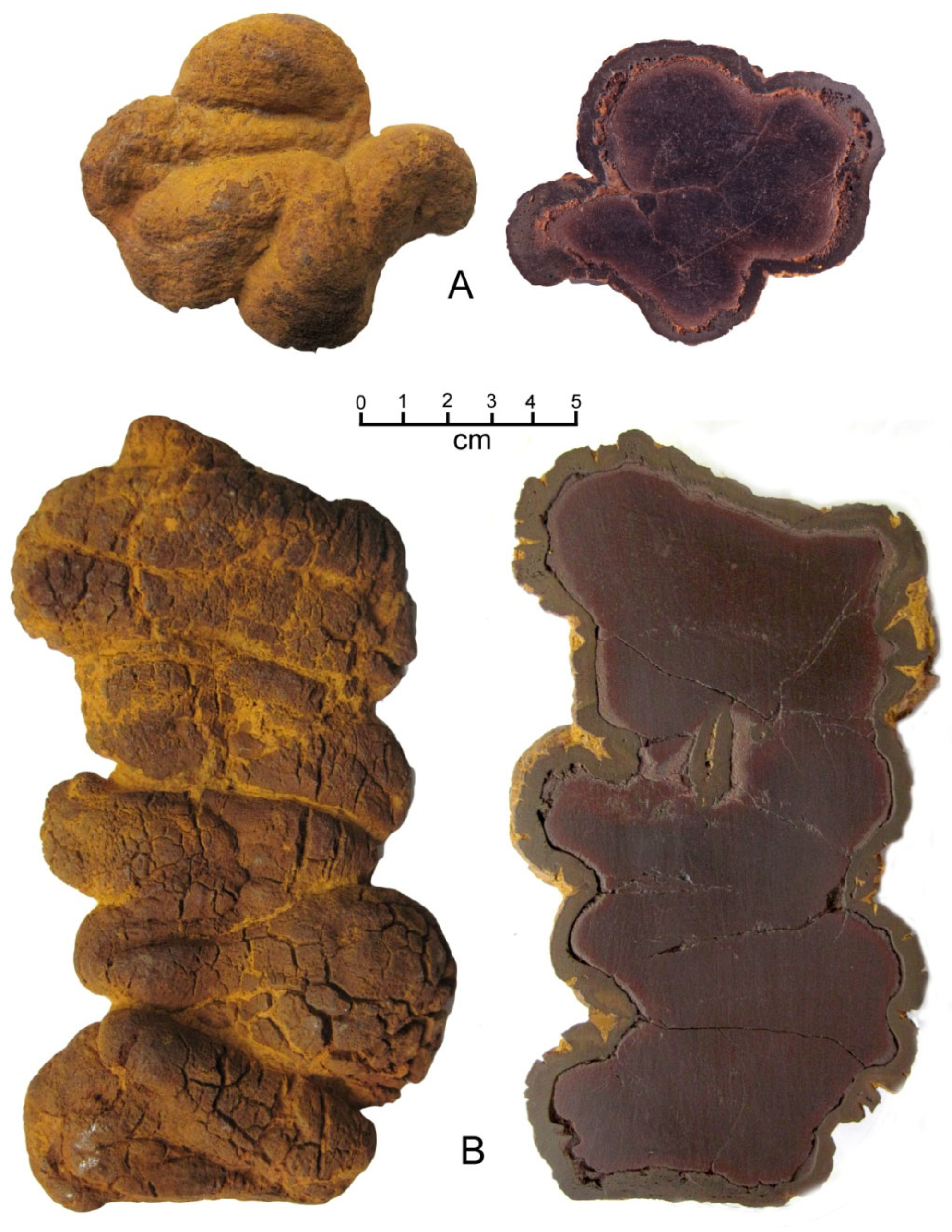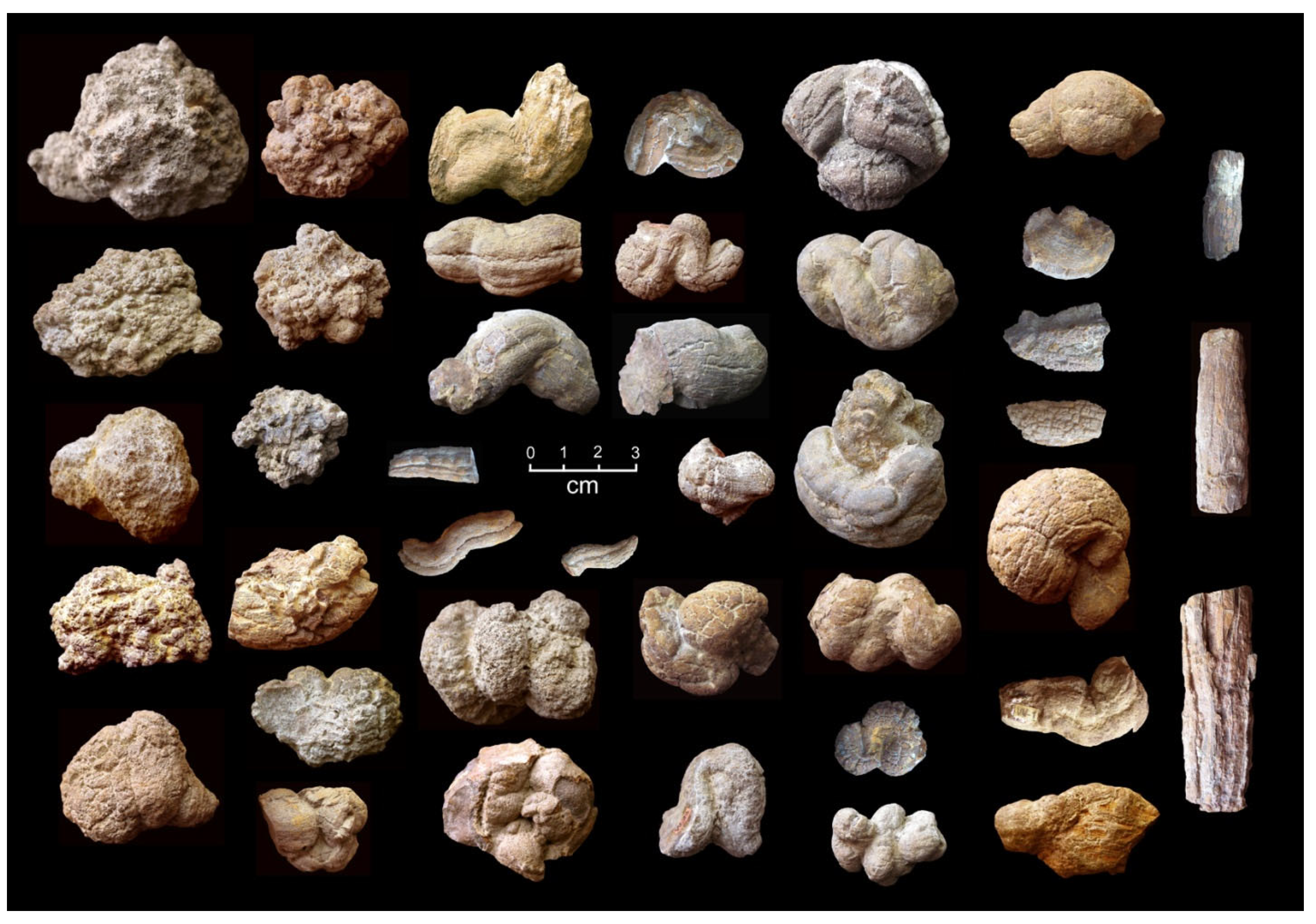 - Seilacher, A.; Marshall, C.; Skinner, C.W.; Tsuihiji, T. A fresh look at sideritic “coprolites”. Paleobiology 2001, 27, 7–13. [Google Scholar] [CrossRef]