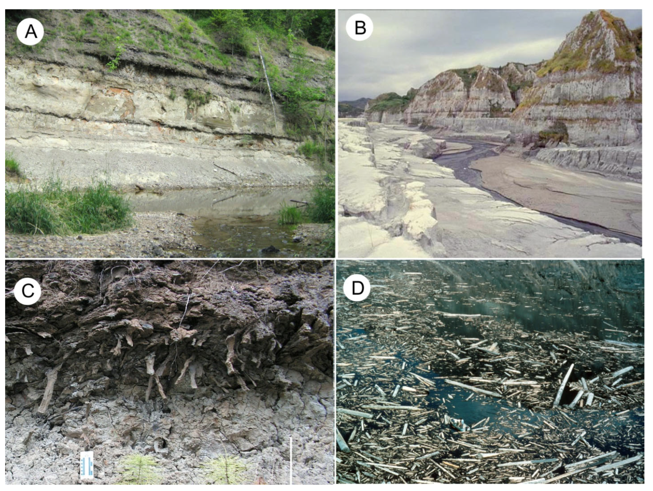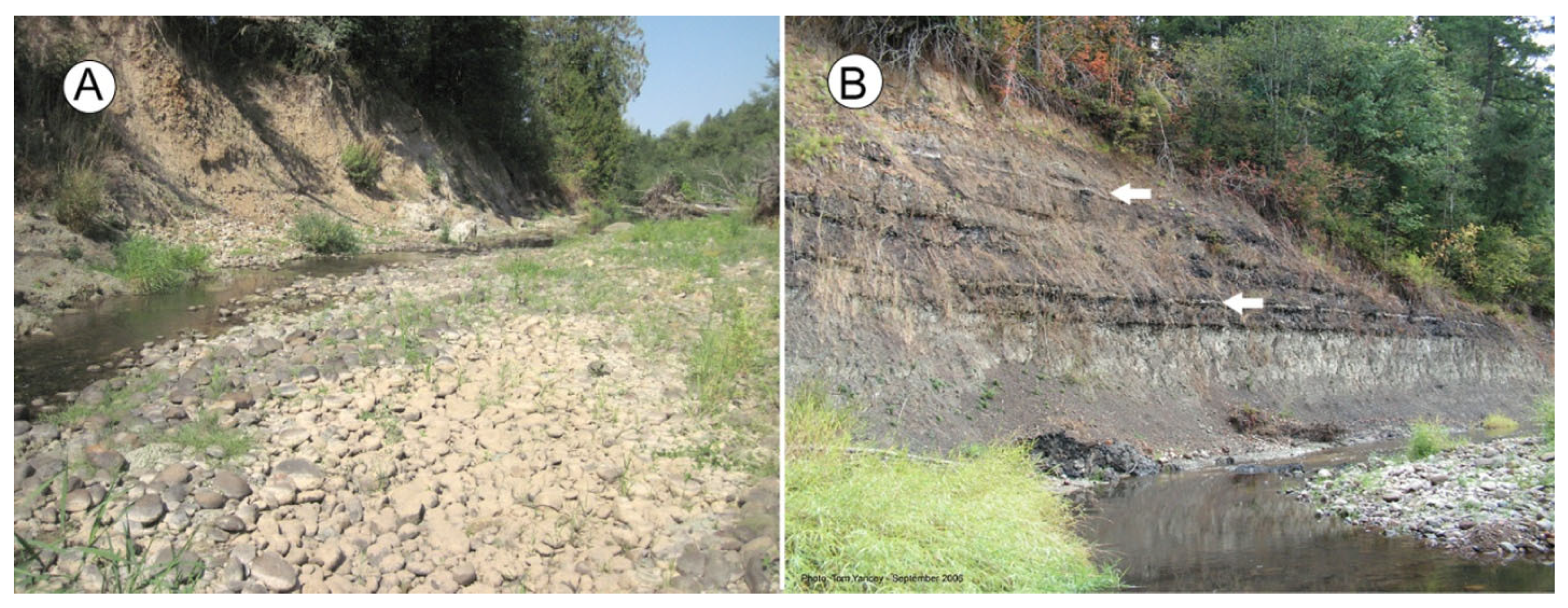 - Yancey, T.E.; Mustoe, G.E.; Leopold, E.B. Mudflow disturbance in latest Miocene forests in Lewis County, Washington. Palaios 2013, 28, 342–358. [Google Scholar] [CrossRef]
