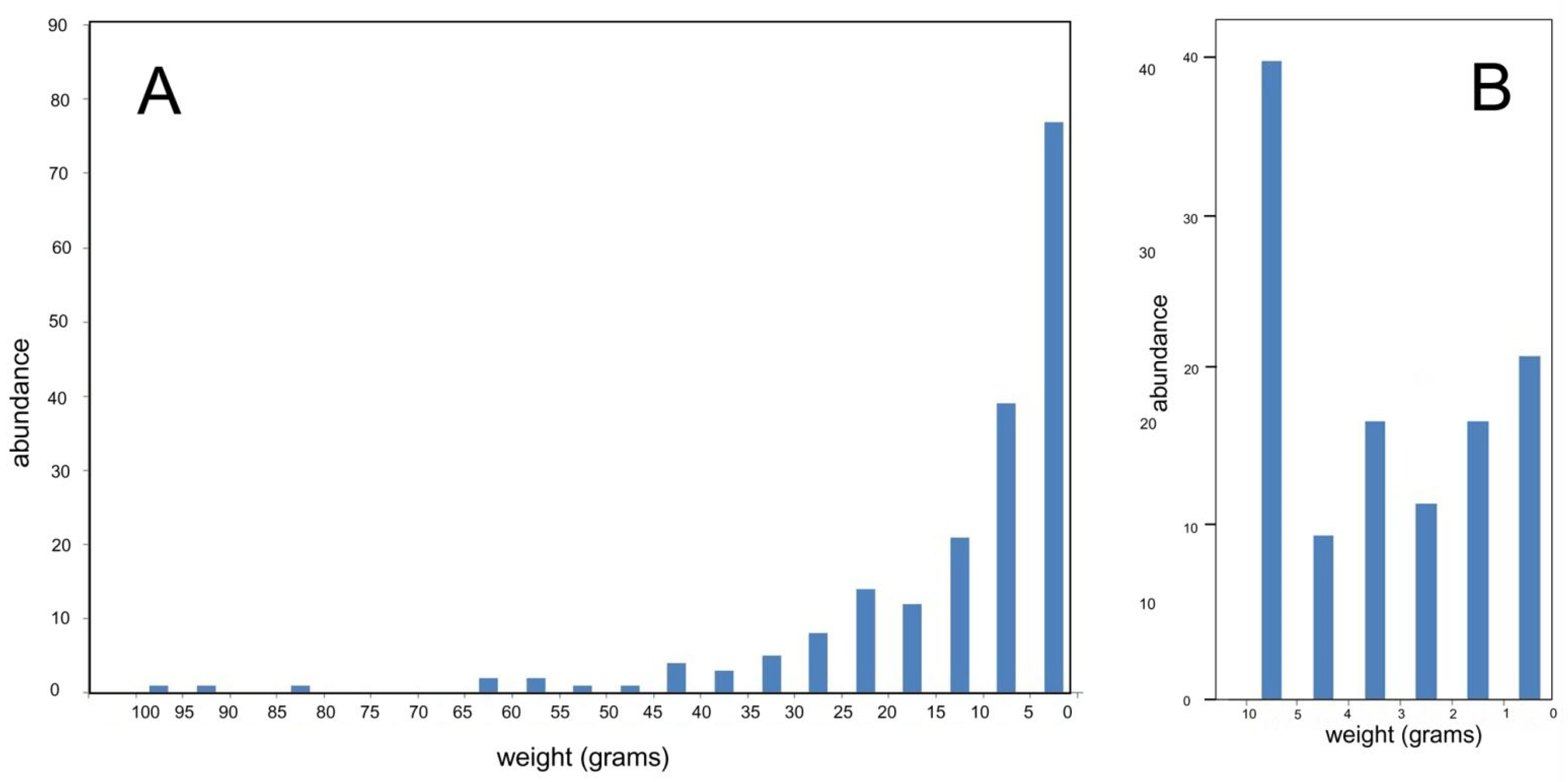 - Unbiased collection shows that a large percentage of specimens are very small.
