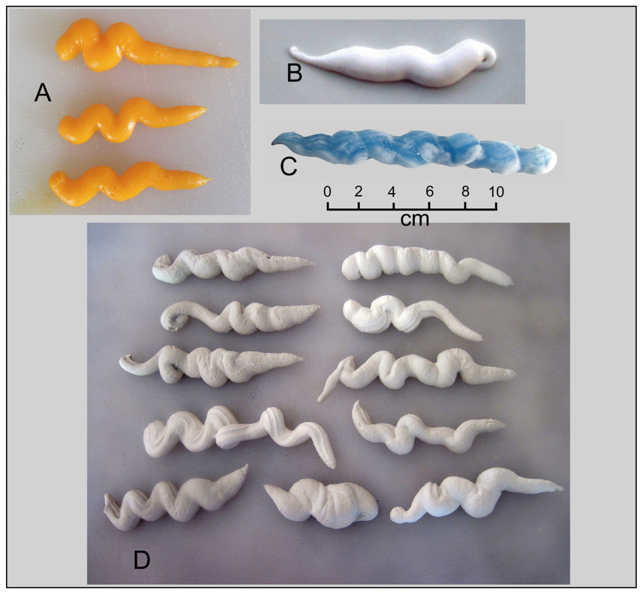 - Broughton, P.L.; Simpson, F.; Whitaker, S.H. Late Cretaceous coprolites from southern Saskatchewan: Comments on excretion, plasticity and ichnological nomenclature. Bull. Can. Pet. Geol. 1977, 25, 1097–1099. [Google Scholar]