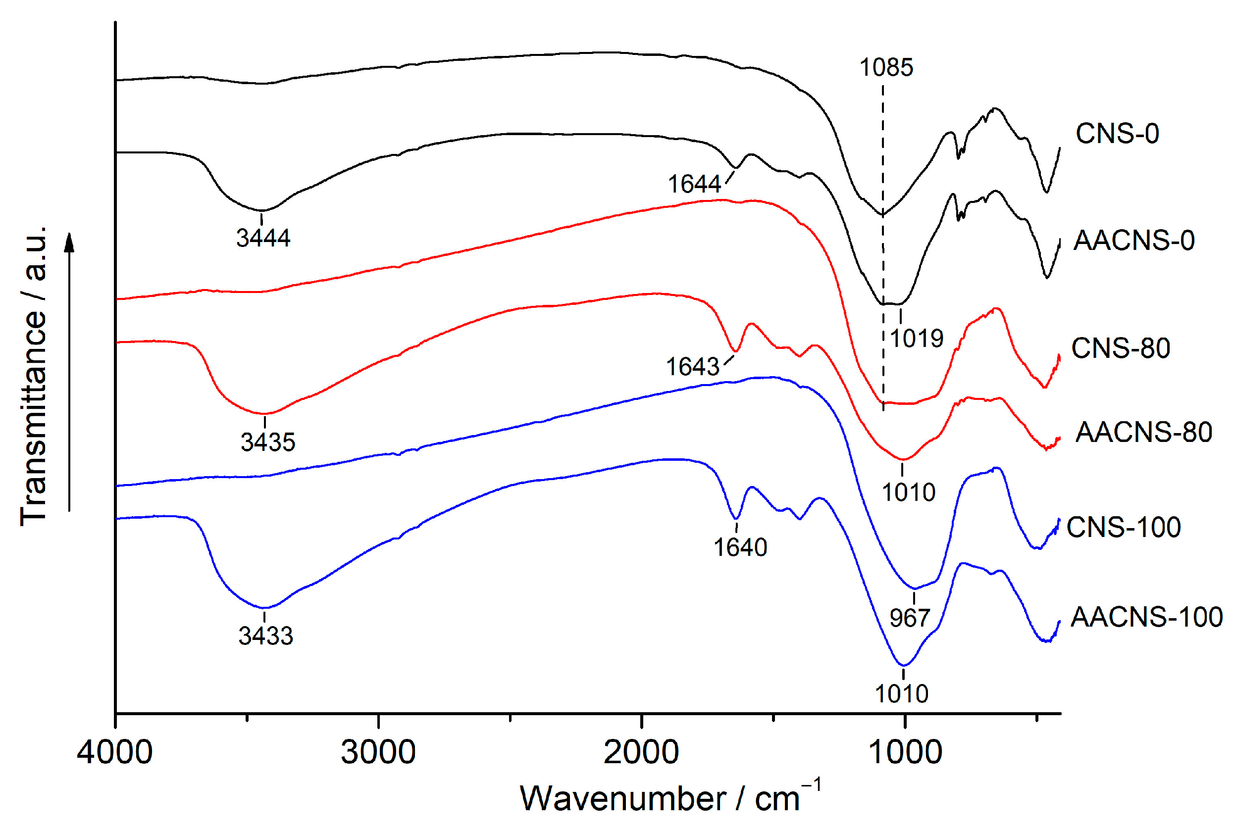 3.2. TG, XRD, and FTIR Spectroscopy Analyses