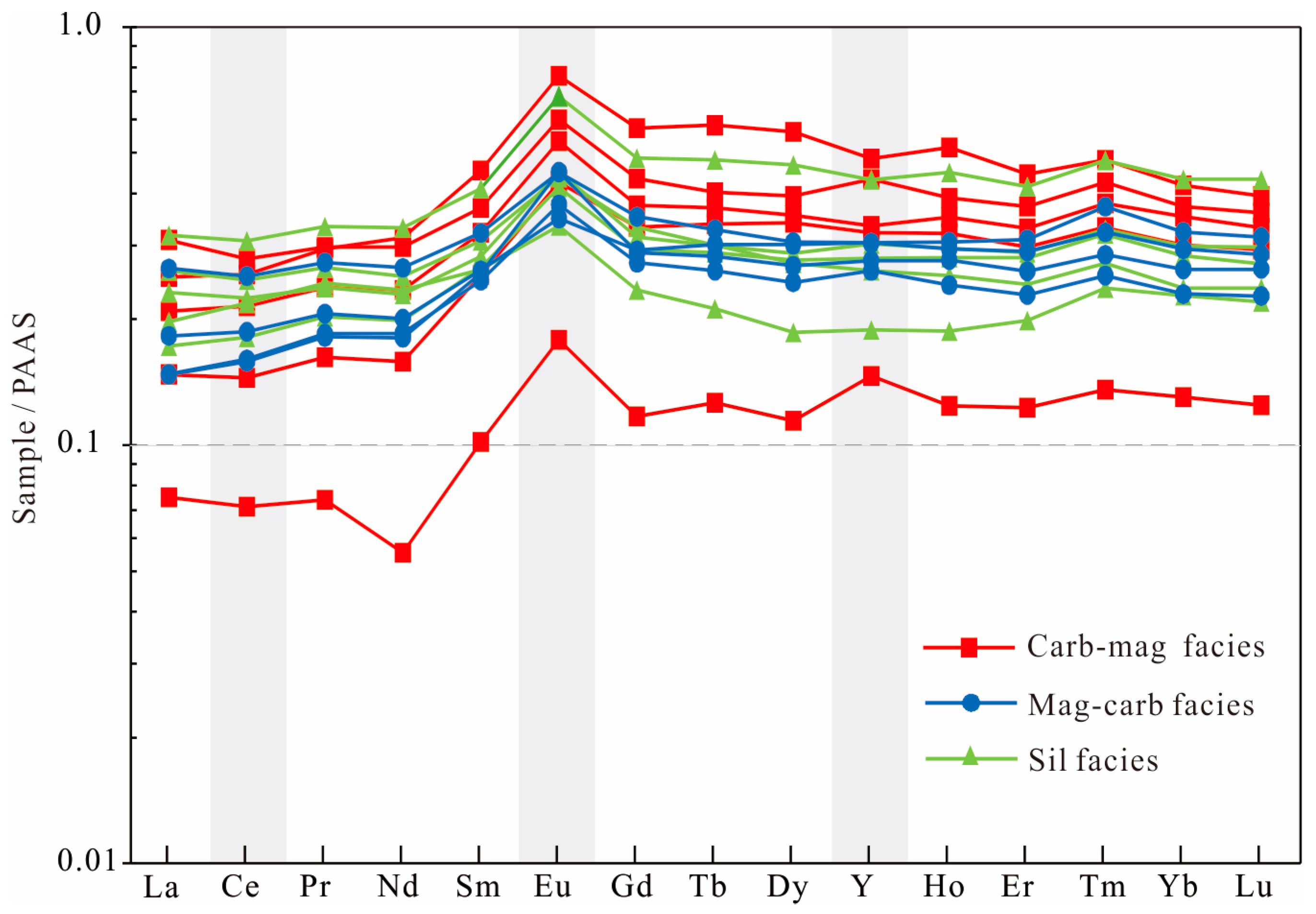- Tang, H.-S.; Chen, Y.-J.; Santosh, M.; Zhong, H.; Yang, T. REE Geochemistry of Carbonates from the Guanmenshan Formation, Liaohe Group, NE Sino-Korean Craton: Implications for Seawater Compositional Change during the Great Oxidation Event. Precambrian Res. 2013, 227, 316–336. [Google Scholar] [CrossRef]