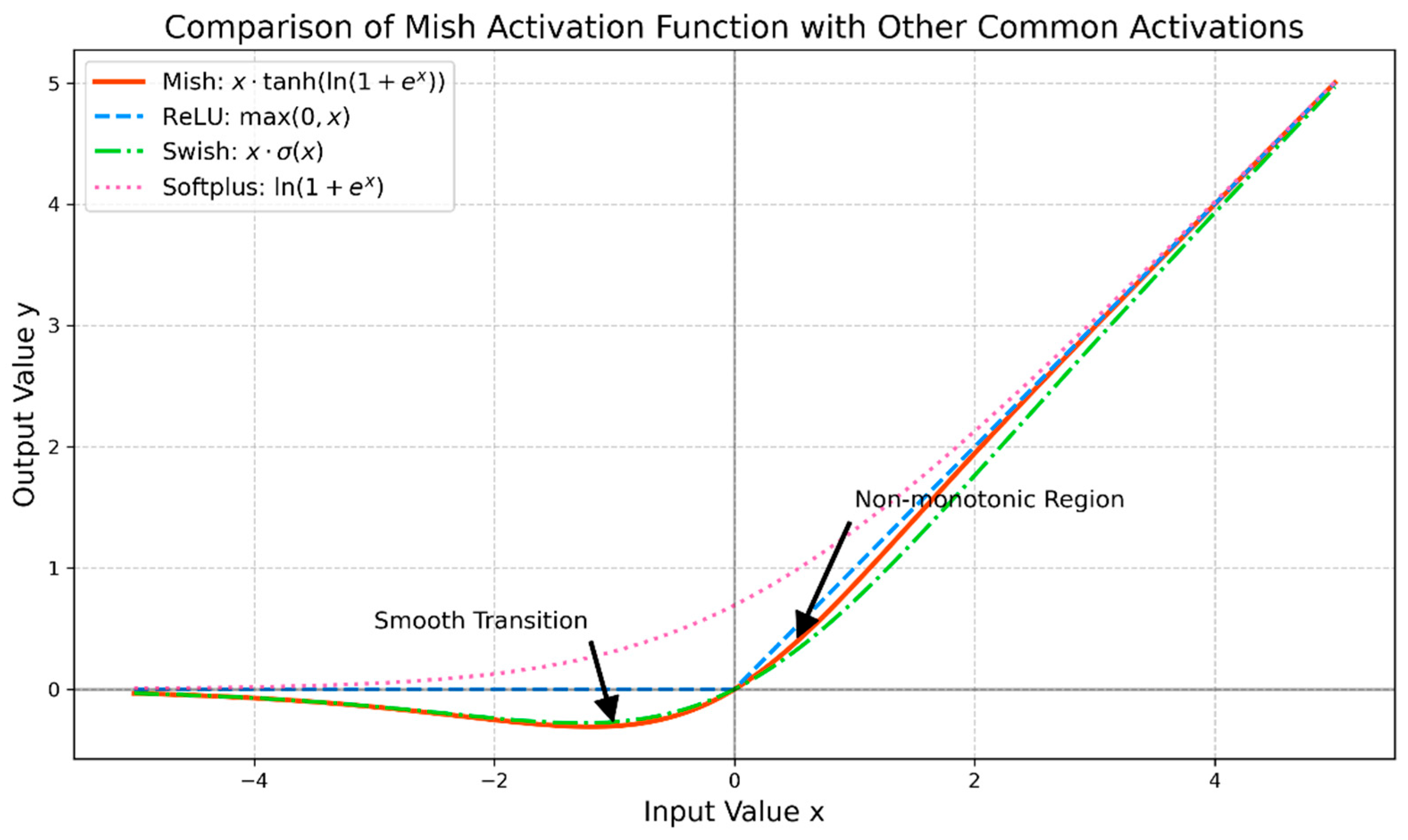 Figure 5. Mish Activation Function and Common Activation Functions.