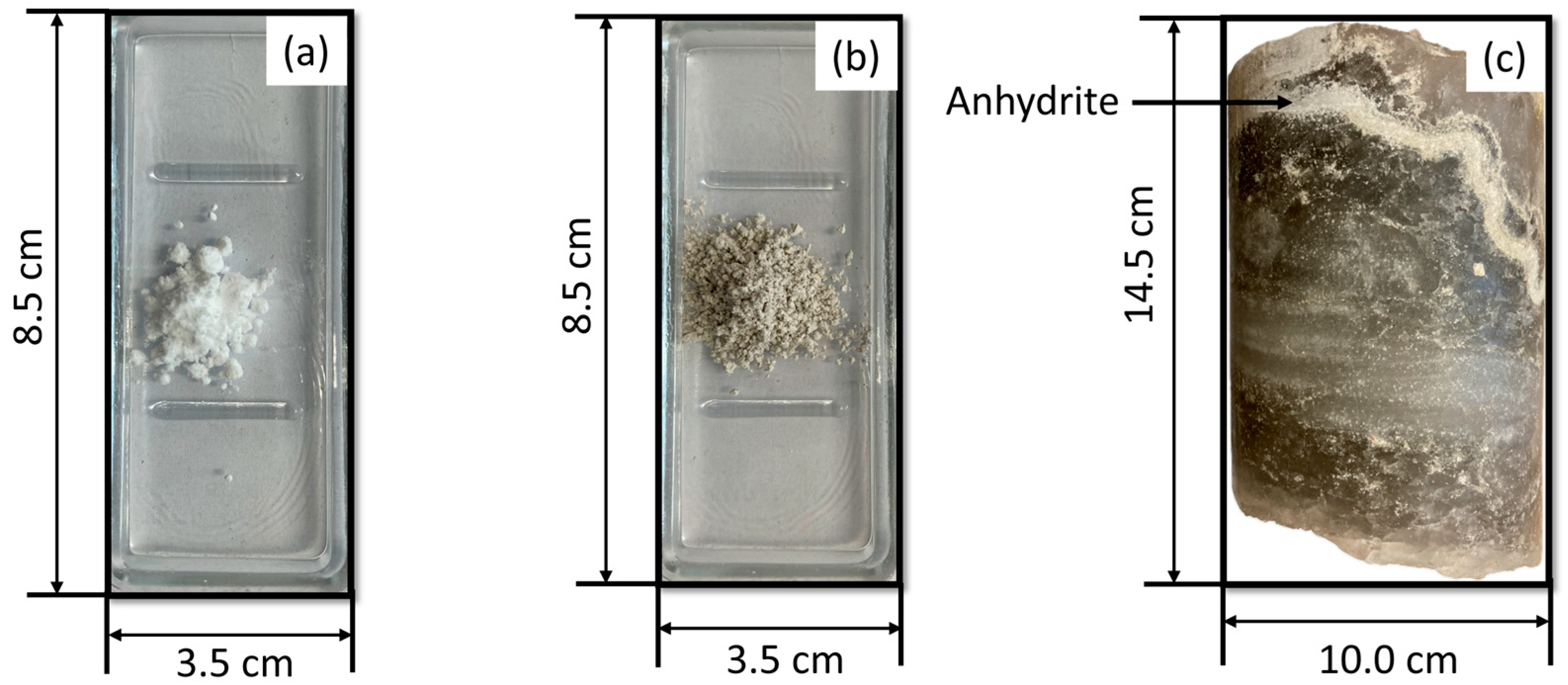 4): Synthetic anhydrite powder (technical by-product of hydrofluoric acid production provided by Fluorchemie Stulln GmbH, Stulln, Germany). This sample was chosen due to its significant fluorescence activity compared to other anhydrite sources. The raw material CaF