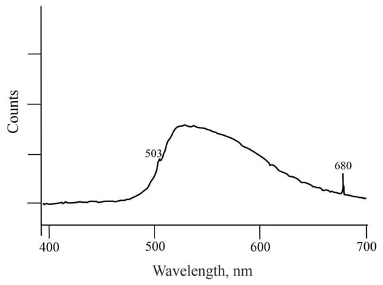 The PL spectrum of crystal 8082 (Figure 6) is typical of previously studied diamonds of variety III from the Aikhal and Udachnaya kimberlite pipes [2] and is characterized by a broad, structureless band, the presence of the nitrogen-containing center H3 (503 nm), and a narrow band in the 680 nm region.