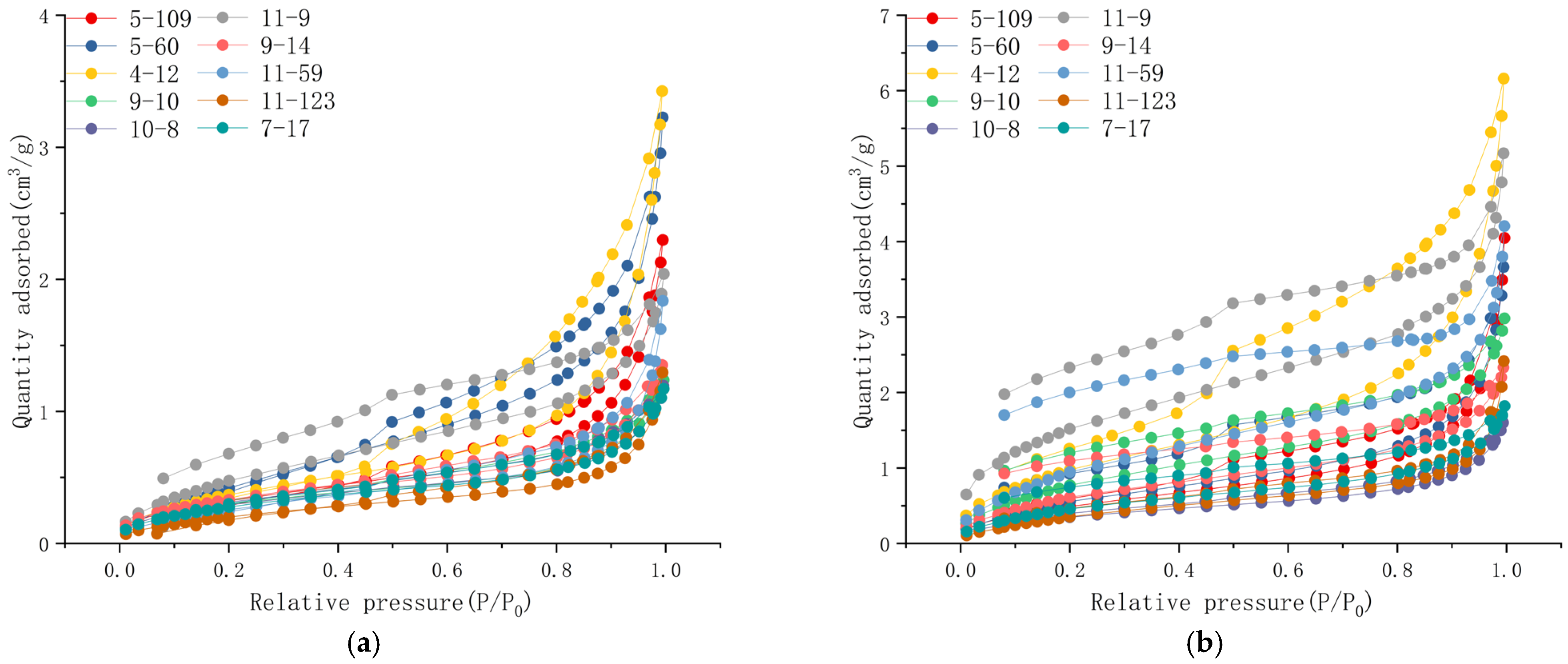 4.2.2. Nitrogen Adsorption Pore Size Distribution Characteristics